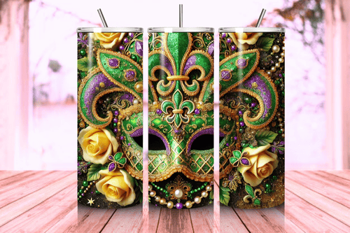 Unmask the fun of Mardi Gras with this stunning Tumbler Mask design, adding a touch of mystery and color to every sip during Carnival season!