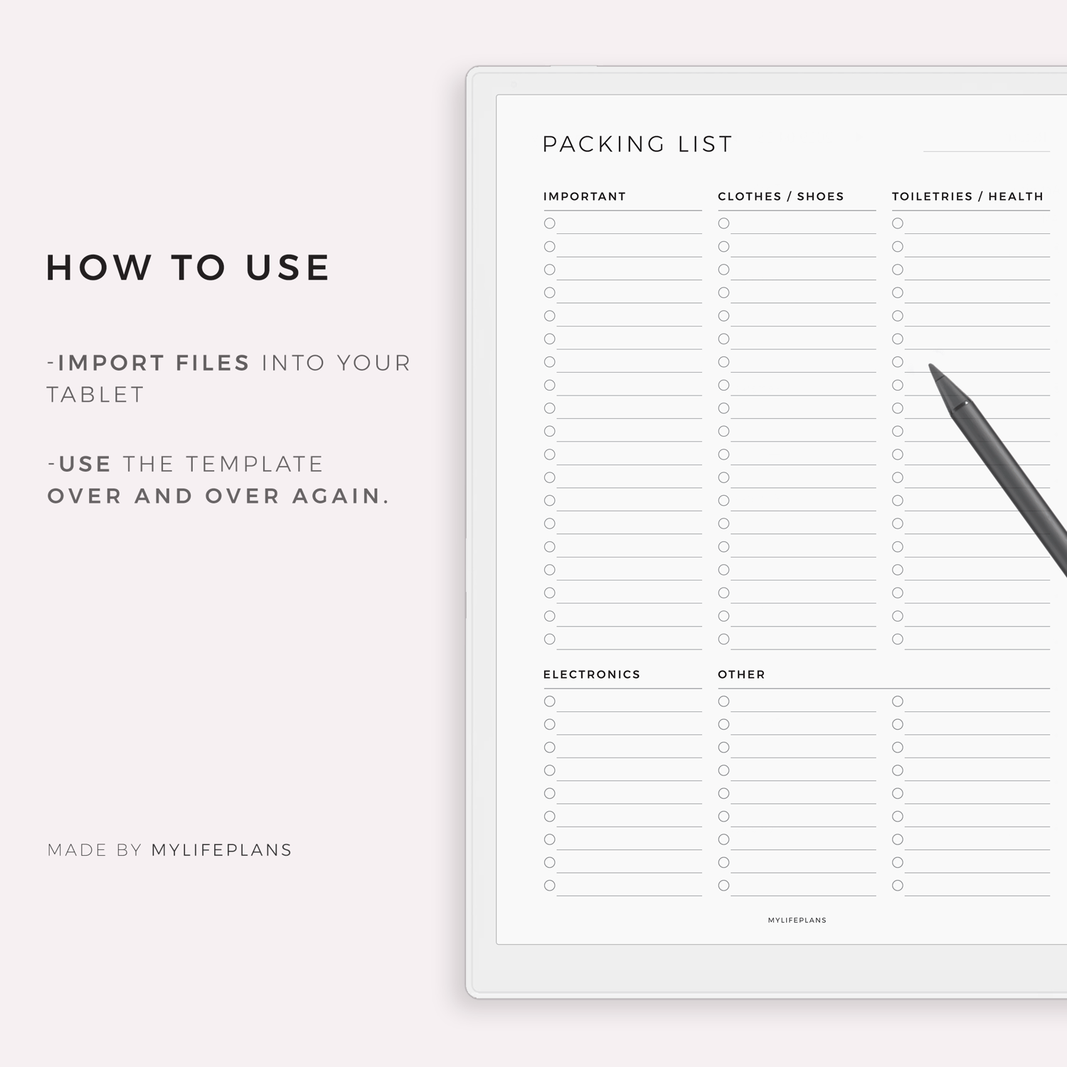 Travel Packing List – A modern, minimalist template that works seamlessly with a wide range of e-ink devices. Simply download, import, and start using it right away.