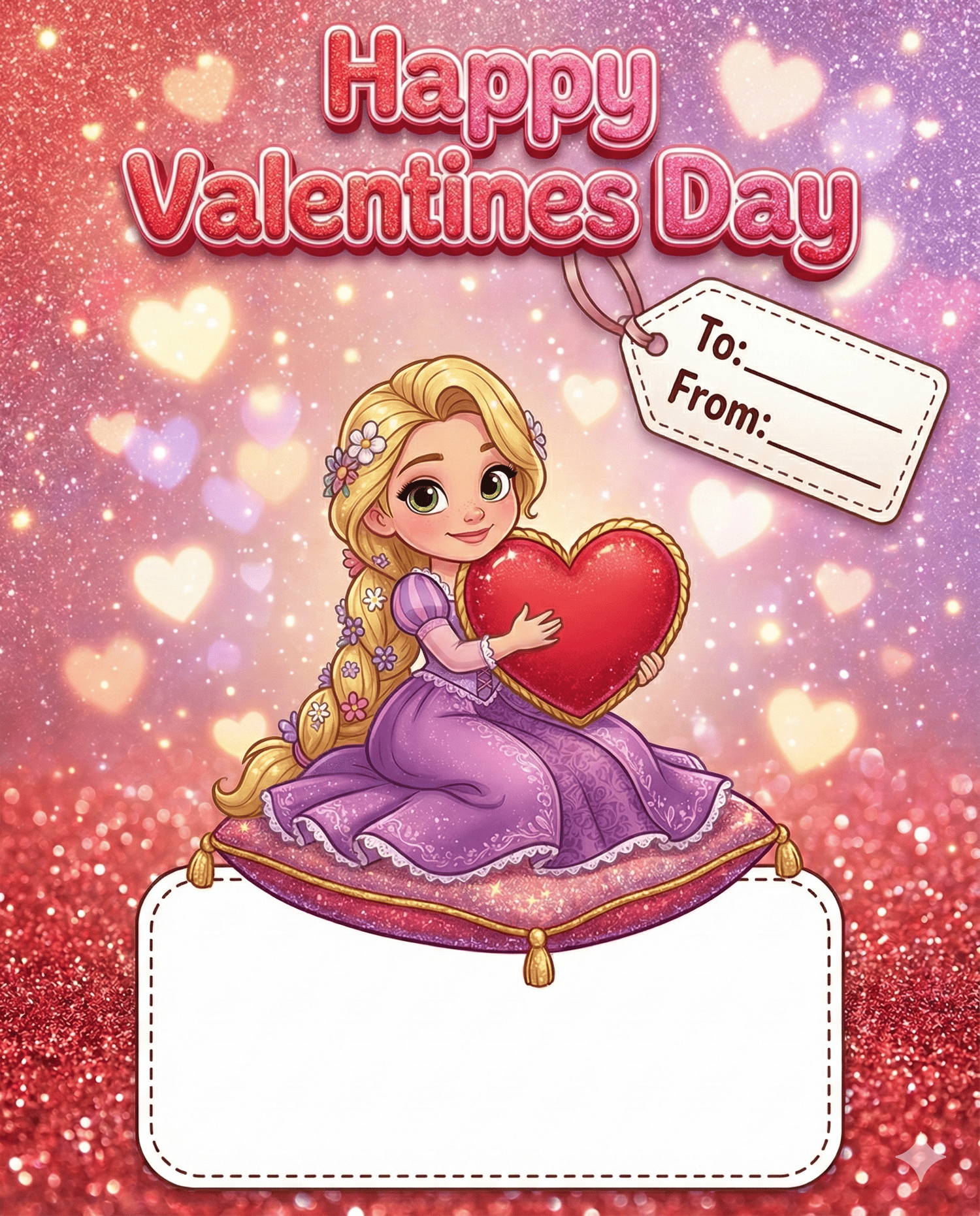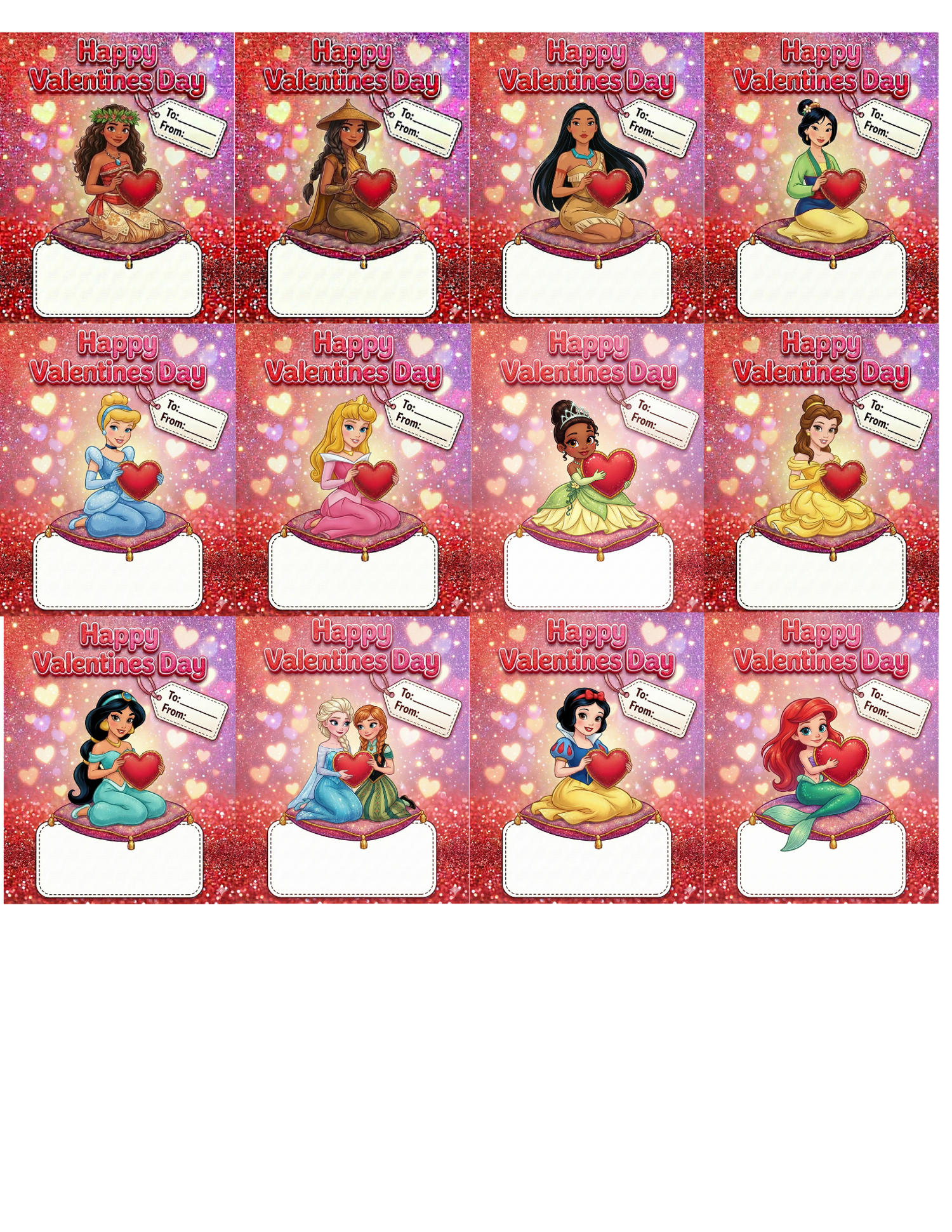 Disney Princesses Candy Gram Valentine’s Day Cards for Kids
