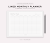 Lined Monthly Planner, Landscape, Compatible with Remarkable, Supernote, Kindle Boox, Kobo