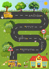 Un exercice fun pour s’entrainer aux tracés des points sur les i/j, barres de t, accents et cédilles à la fin du mot, sur la route de l‘école.