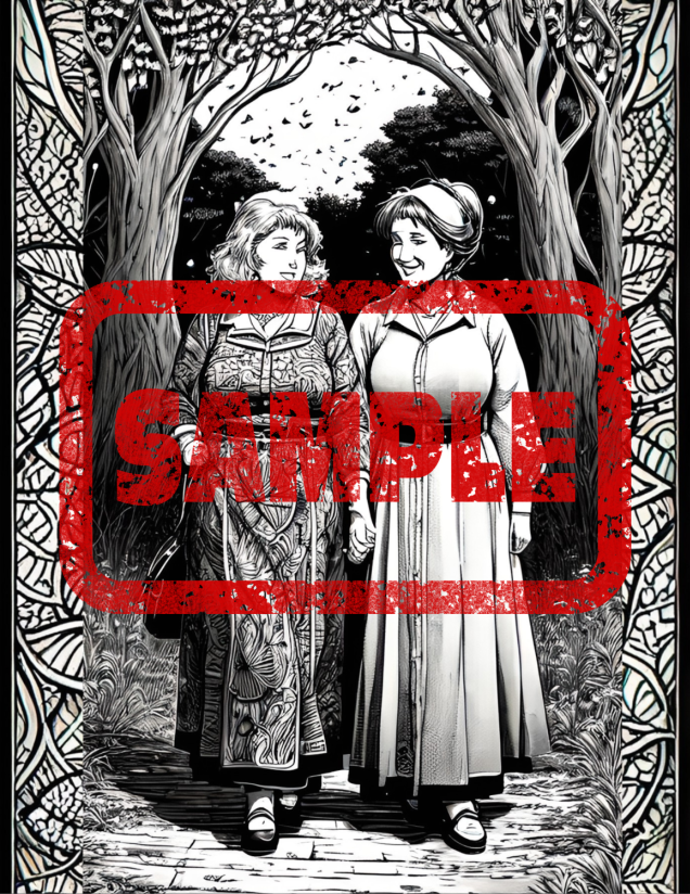 I love making them...so here is a printable for your enjoyment. Find various lesbian couples overlayed on intricate patterns ranging from geometric to floral and even Celtic knotwork. I also sell the individual pages for $1 a piece, so all 25 for $10 is a deal!