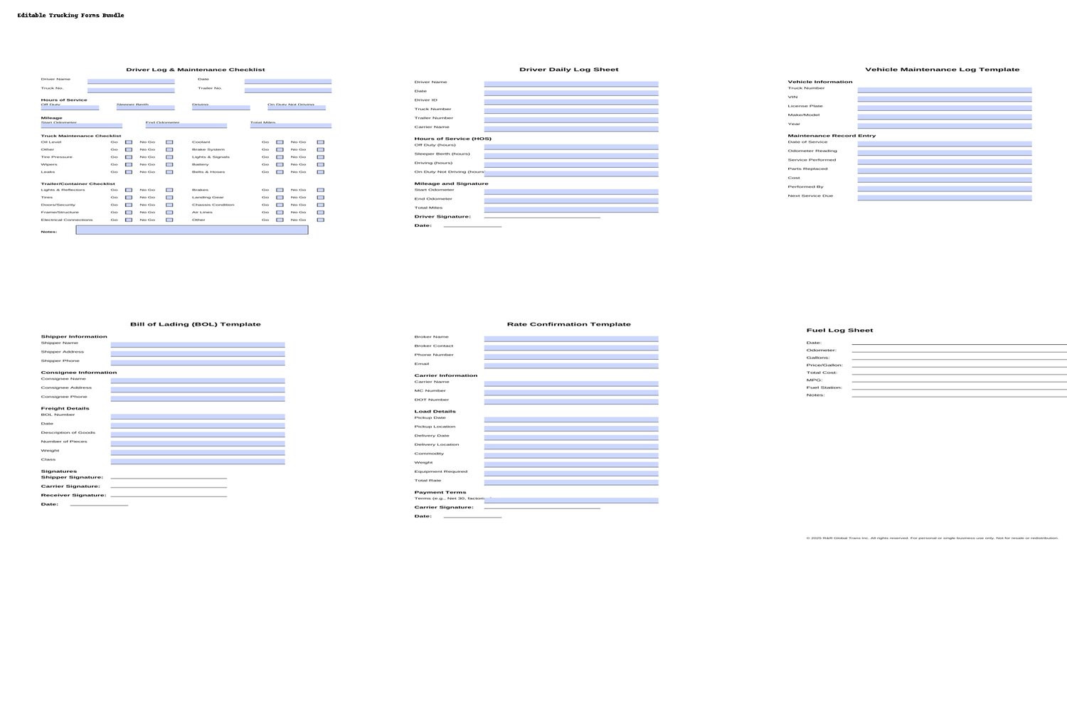 Take control of your trucking business with this professionally designed forms bundle by R&R Global Trans Inc.