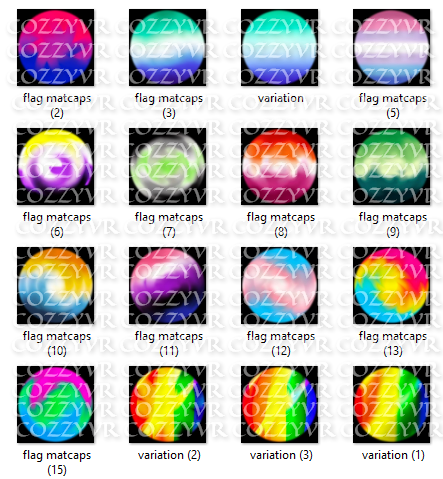 you will get: 16 pride matcaps 12 main and 4 slight variants.