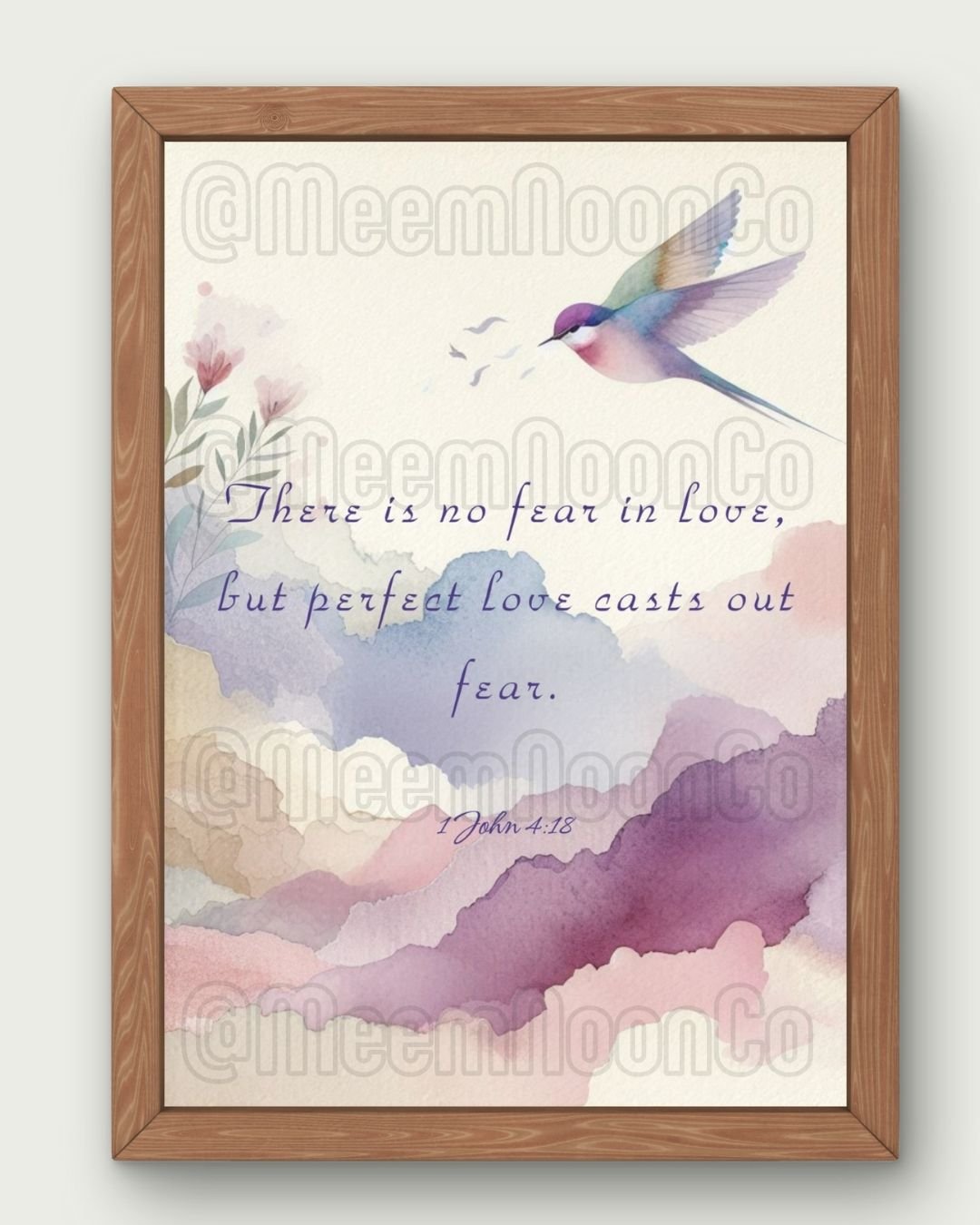 This gentle and powerful scripture print is based on 1 John 4:18: