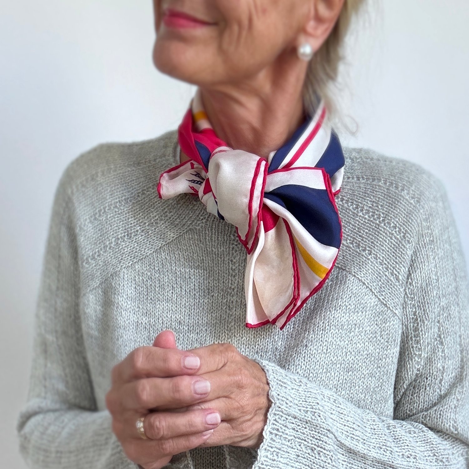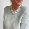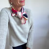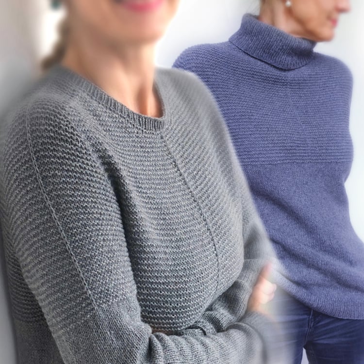 The broken rib stitch lines guide the eye from neck to sleeve, creating a sophisticated silhouette that flatters every figure.