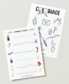 - Un plateau de jeu avec des cartes à imprimer (anagramme, mobilité des doigts, vitesse, imagination, tracé glissé, devinette...)