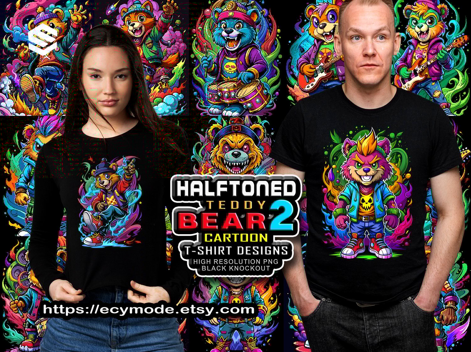 31 Halftone Teddy Bear Cartoon Tshirt design bundle, png for dtf png, png designs for shirt, hiphop png, png for sublimate, Thrifty creators