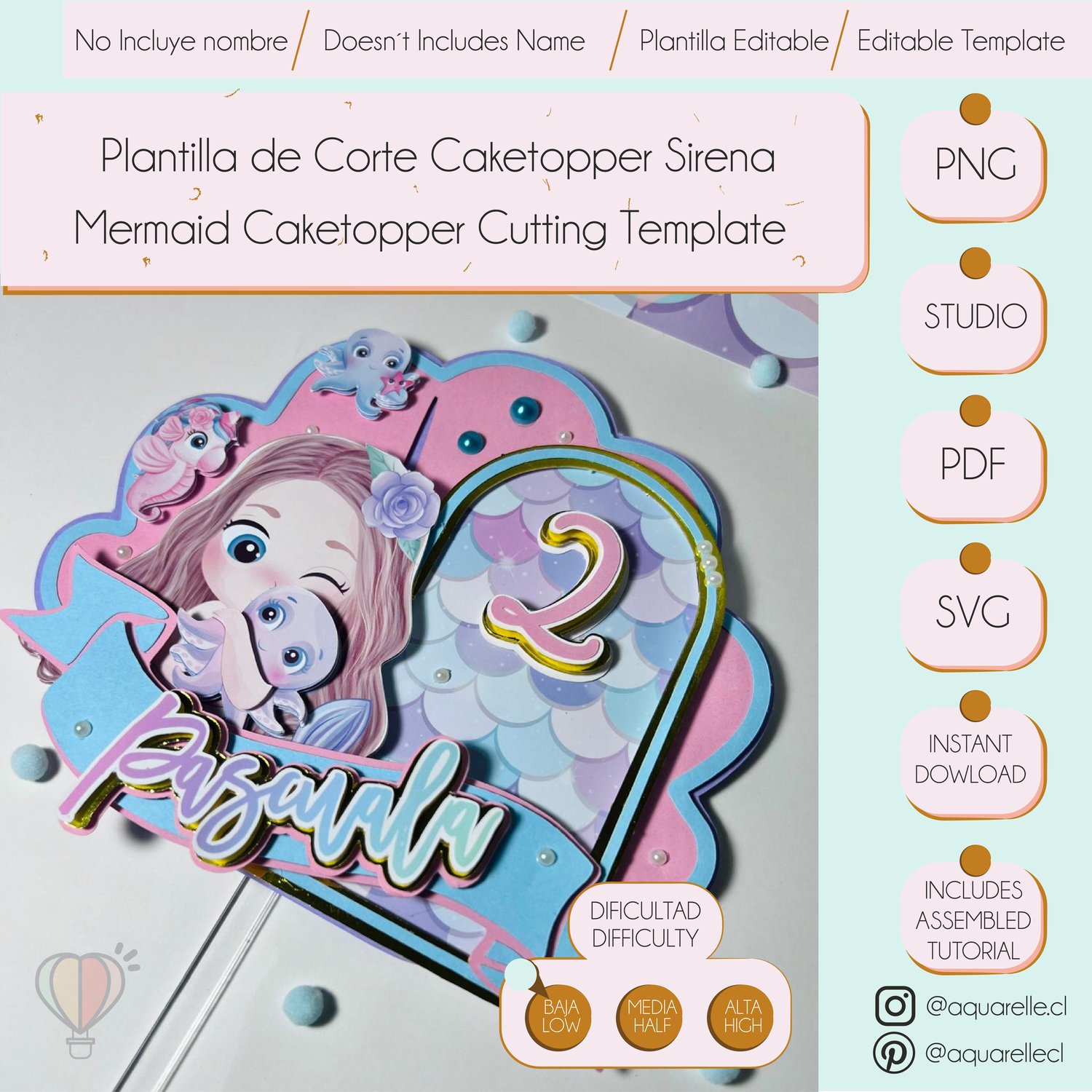 Topper Mermaid SVG, Little Mermaid Caketopper Template, Sirenita Caketopper Diseño Digital