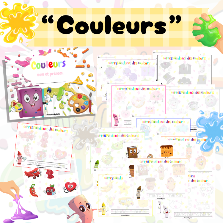 - Fiches de correspondance des couleurs avec des personnages mignons et des illustrations attrayantes