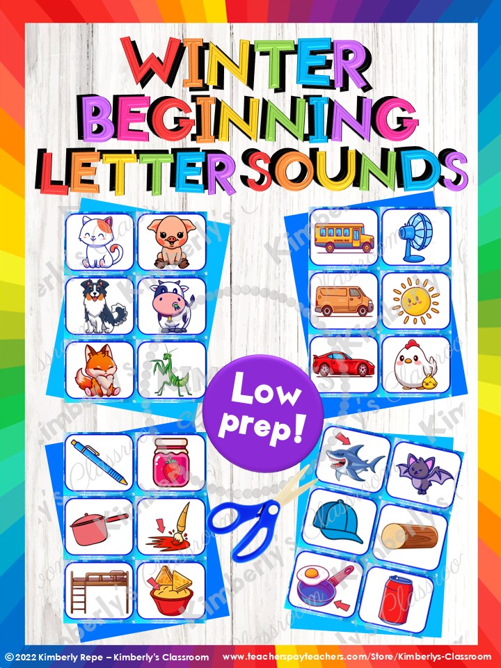 Winter CVC Beginning Letter Sounds Phonics Center - Phonemic Awareness Task Cards & Writing Activities