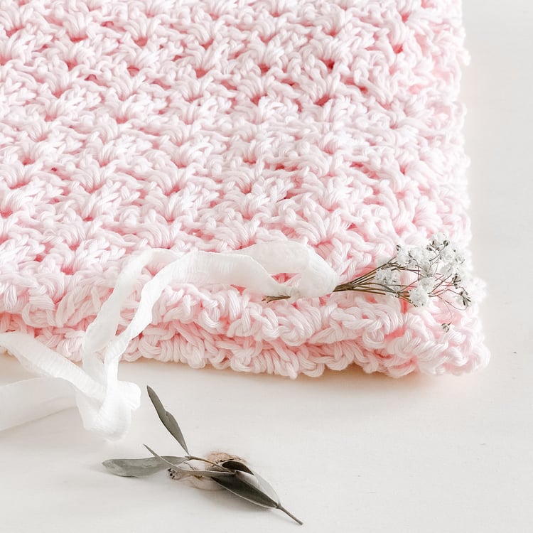 Crochet Baby Blanket Rebecca with a cute matching hat.
