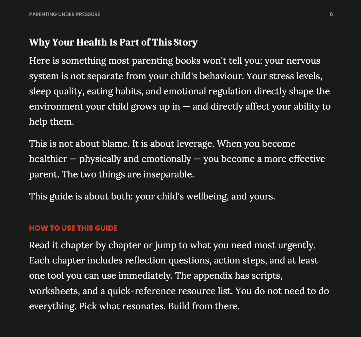Parenting Under Pressure is not a theory. It’s a reset — written specifically for the parent whose nervous system is already in overdrive.