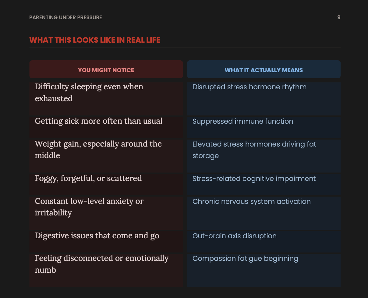 - What chronic parenting stress is quietly doing to your body — and the 5-minute interventions that begin to reverse it