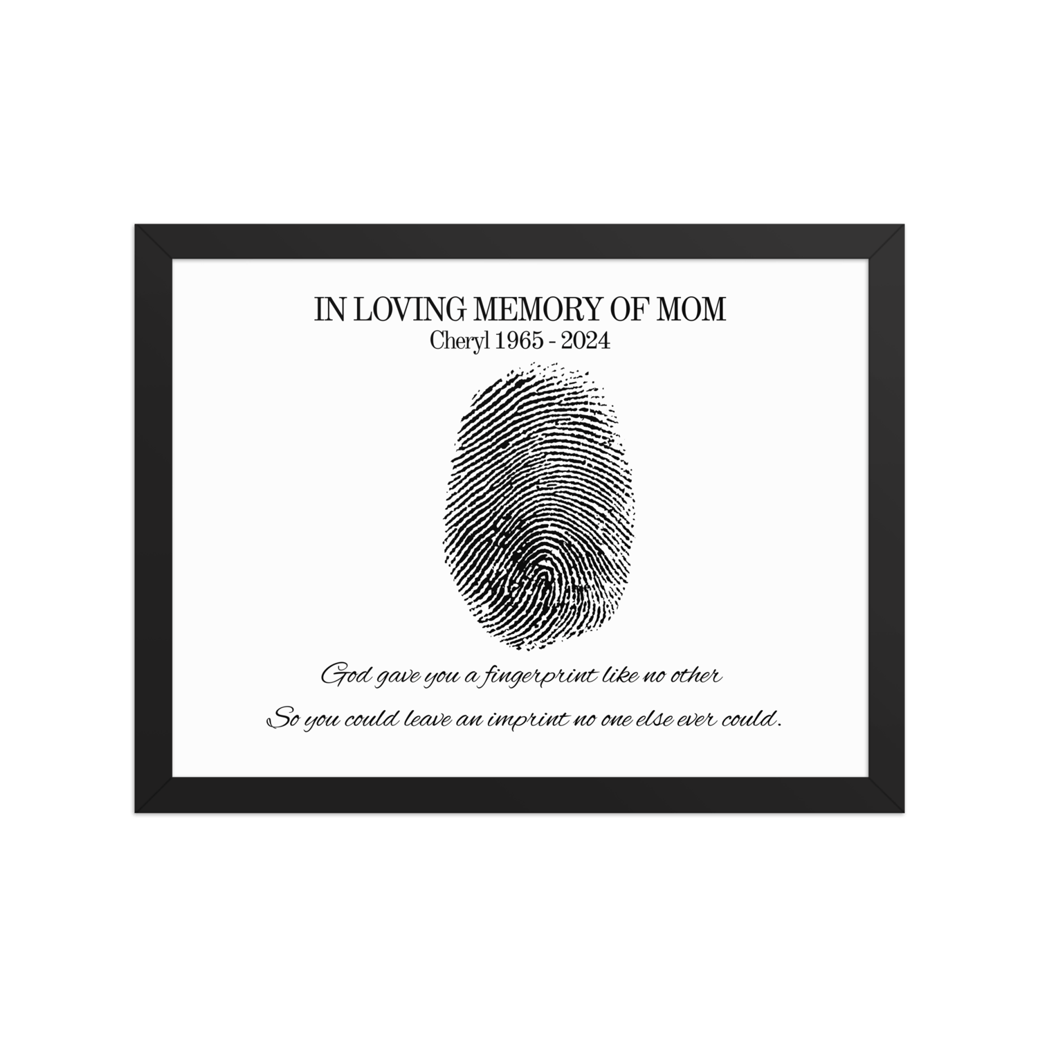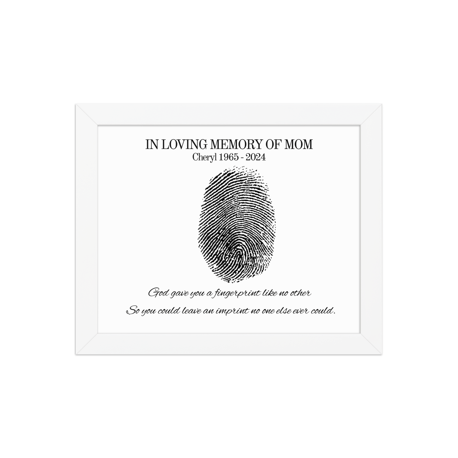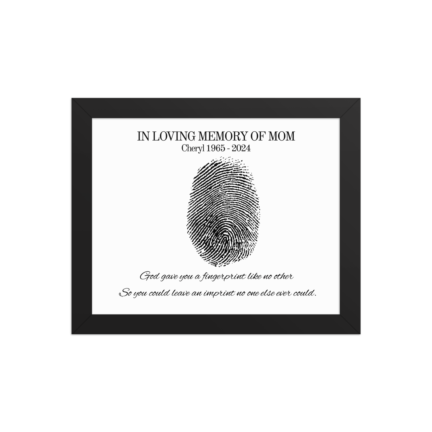 Honor the memory of someone truly special with this unique personalized fingerprint memorial print. Featuring the touching words: