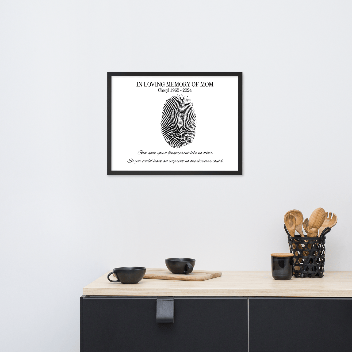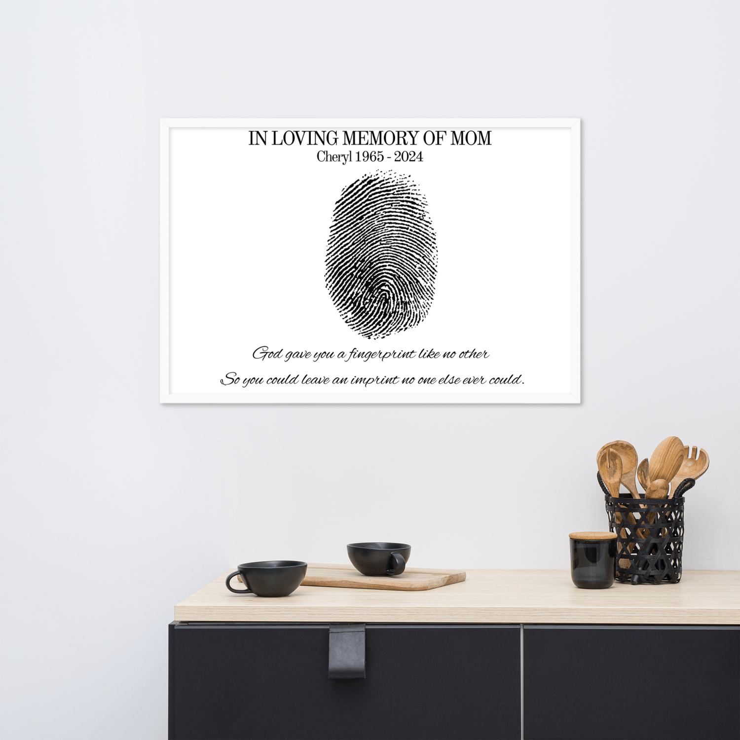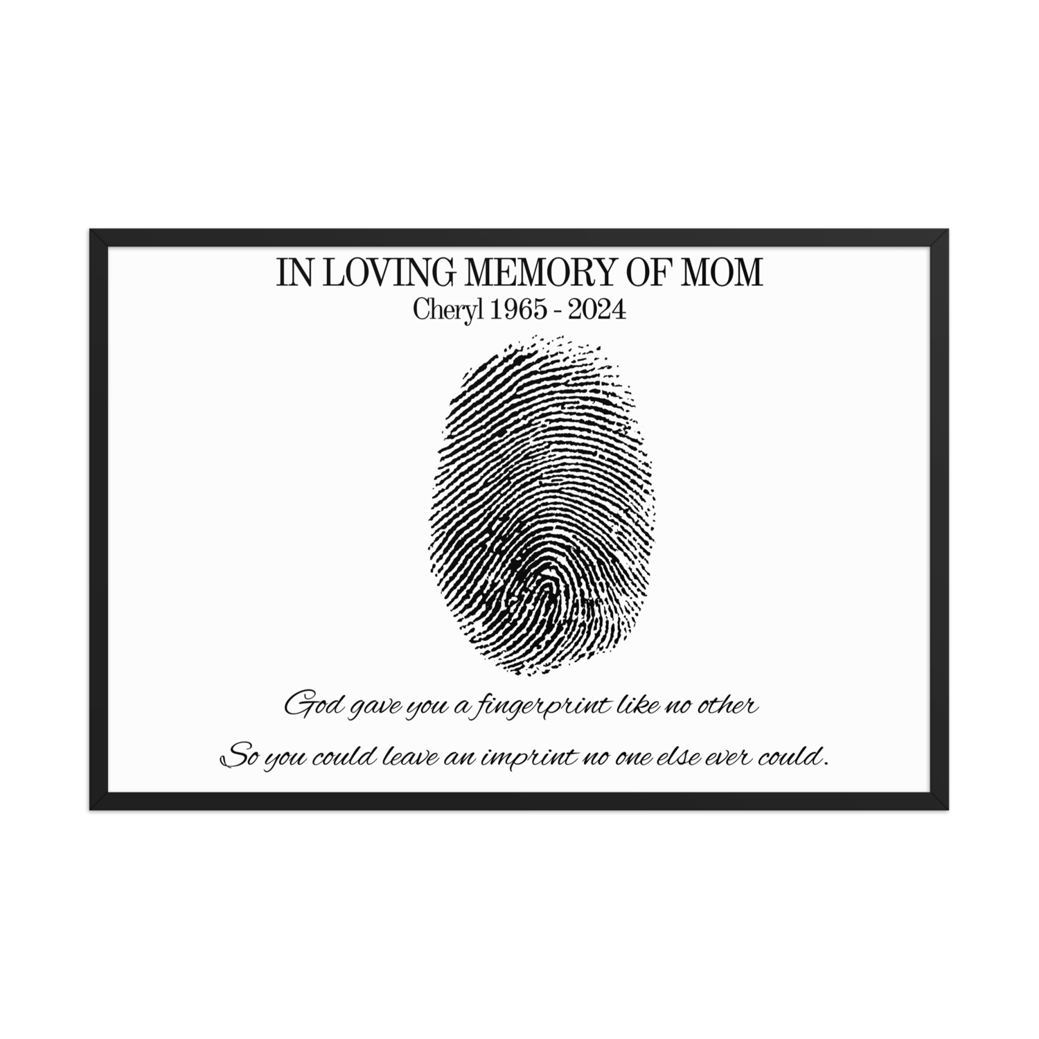 Honor the memory of someone truly special with this unique personalized fingerprint memorial print. Featuring the touching words: