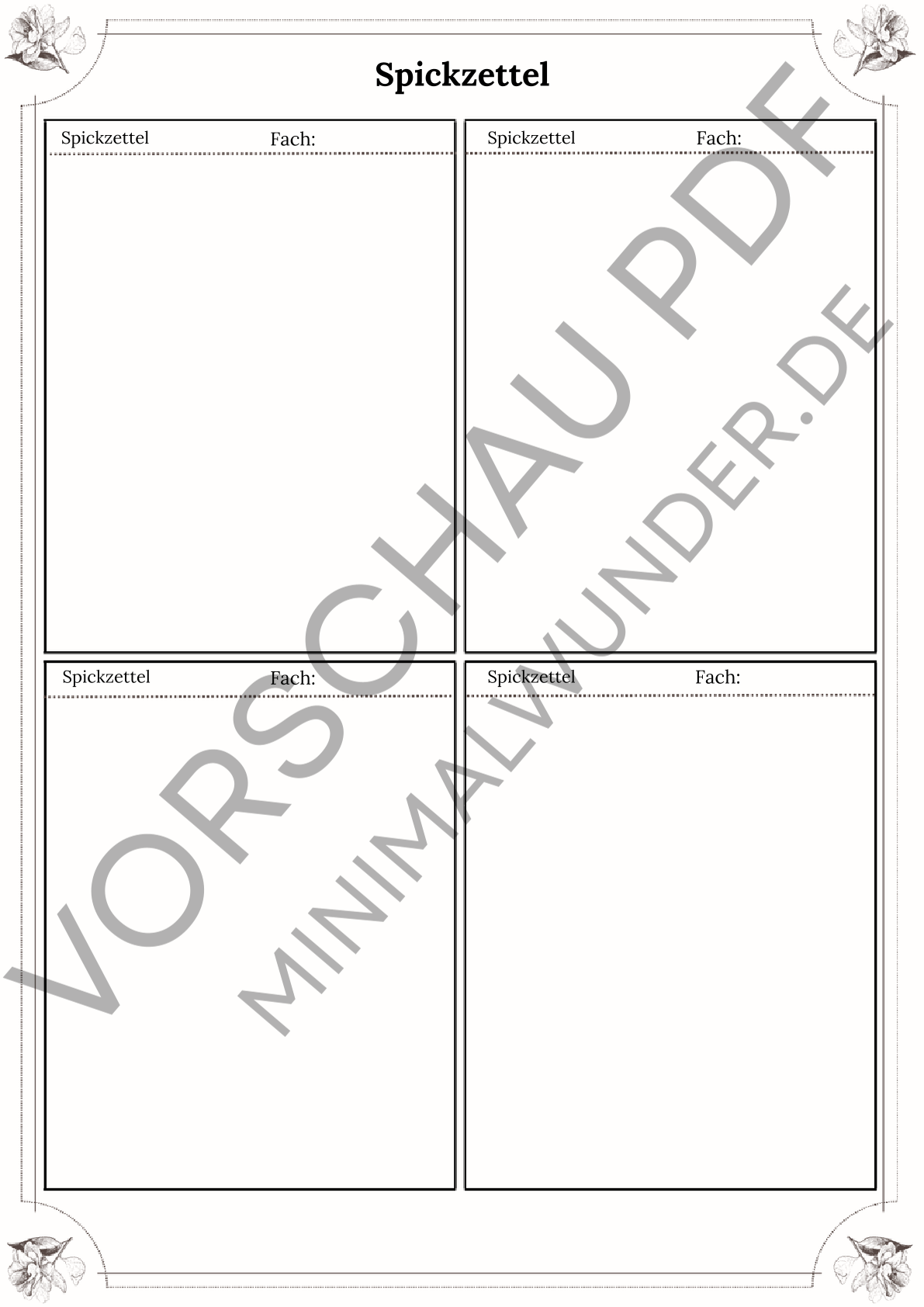 Mit diesem übersichtlichen Spickzettel kannst du deine Lerninhalte klar und kompakt zusammenfassen. Ob für Prüfungen, Referate oder den schnellen Überblick, hier findet alles seinen Platz.