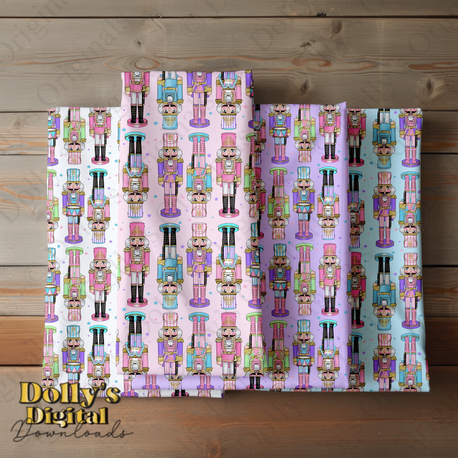 Includes Four Pastel Nutcracker Multicolour Seamless Patterns Clipart PNG (4 PNG’s)