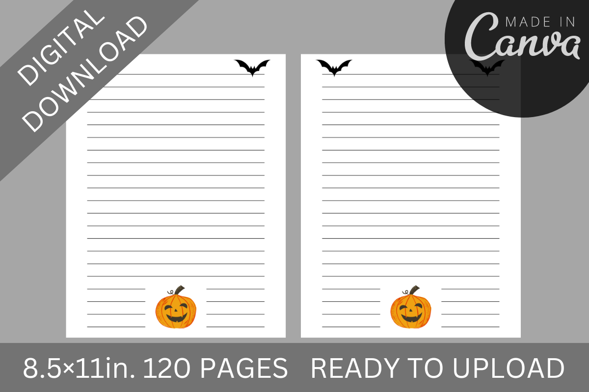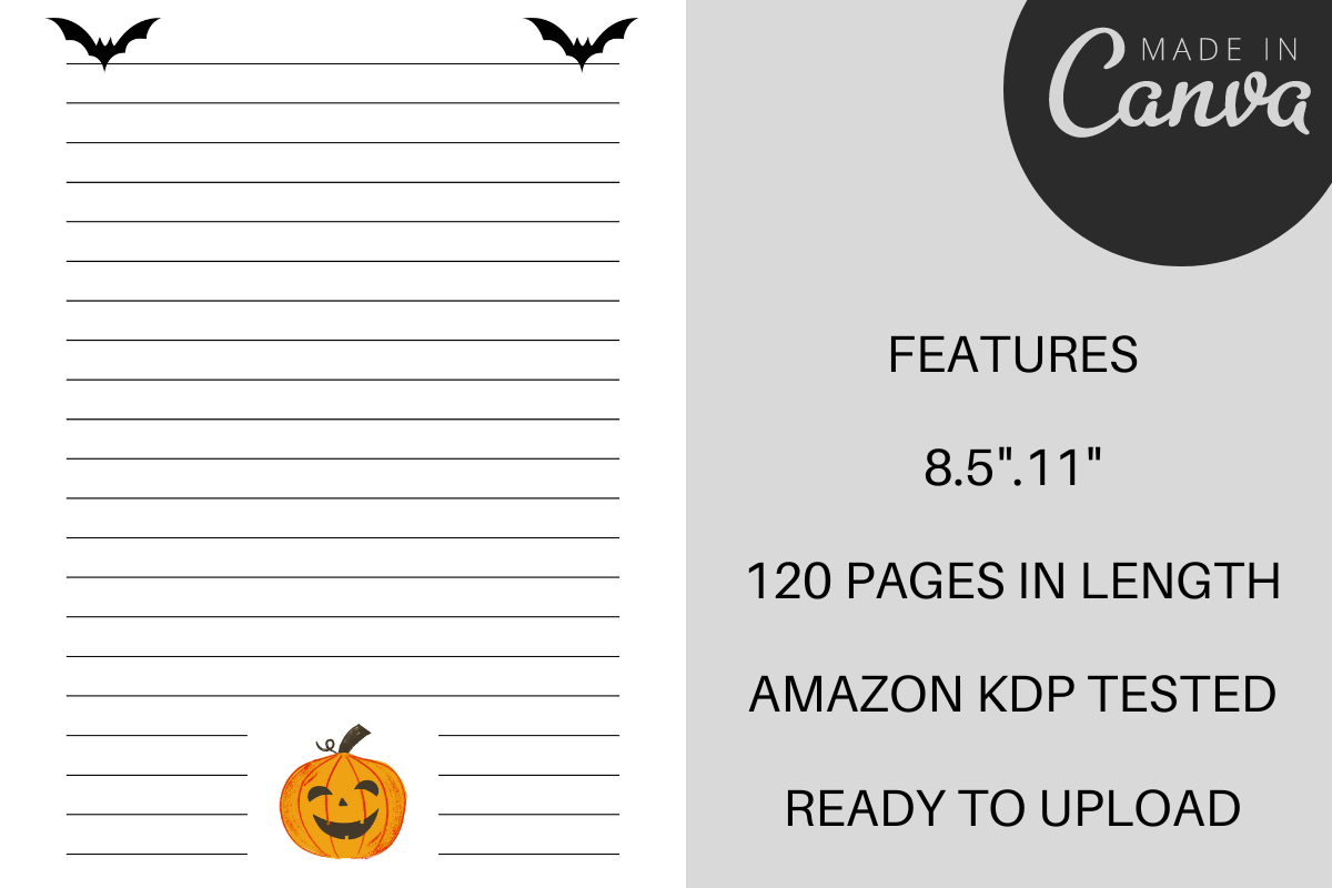 With this interior, you can quickly and easily create a high-quality, professional-looking lined hallowen themed notebook or journal for KDP.