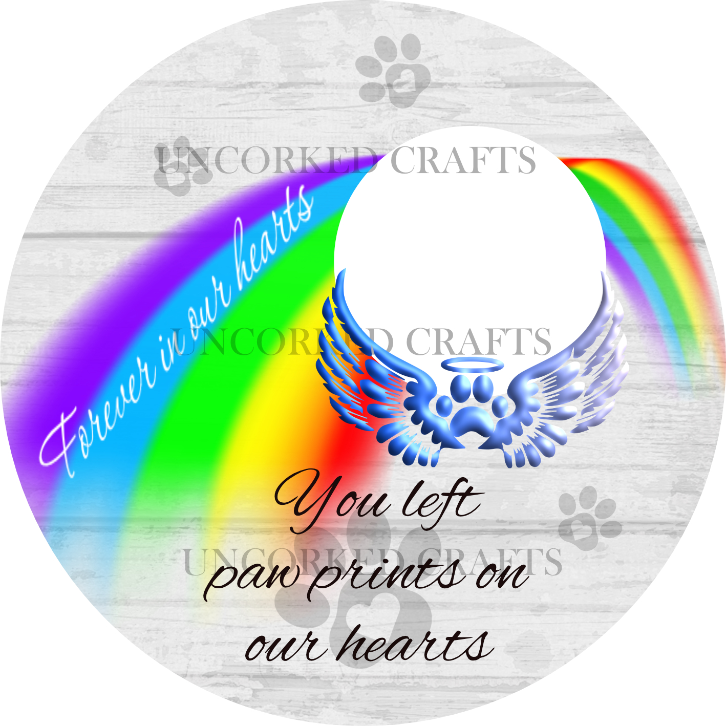 Dog memorial circular design with space to add your own photograph.