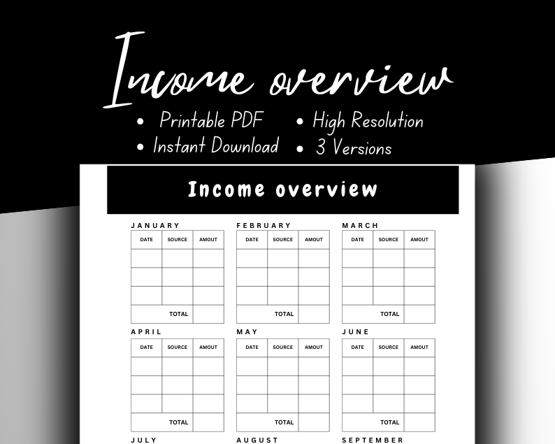 Income Overview Printable PDF | Instant Download | High Resolution | 3 Versions