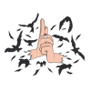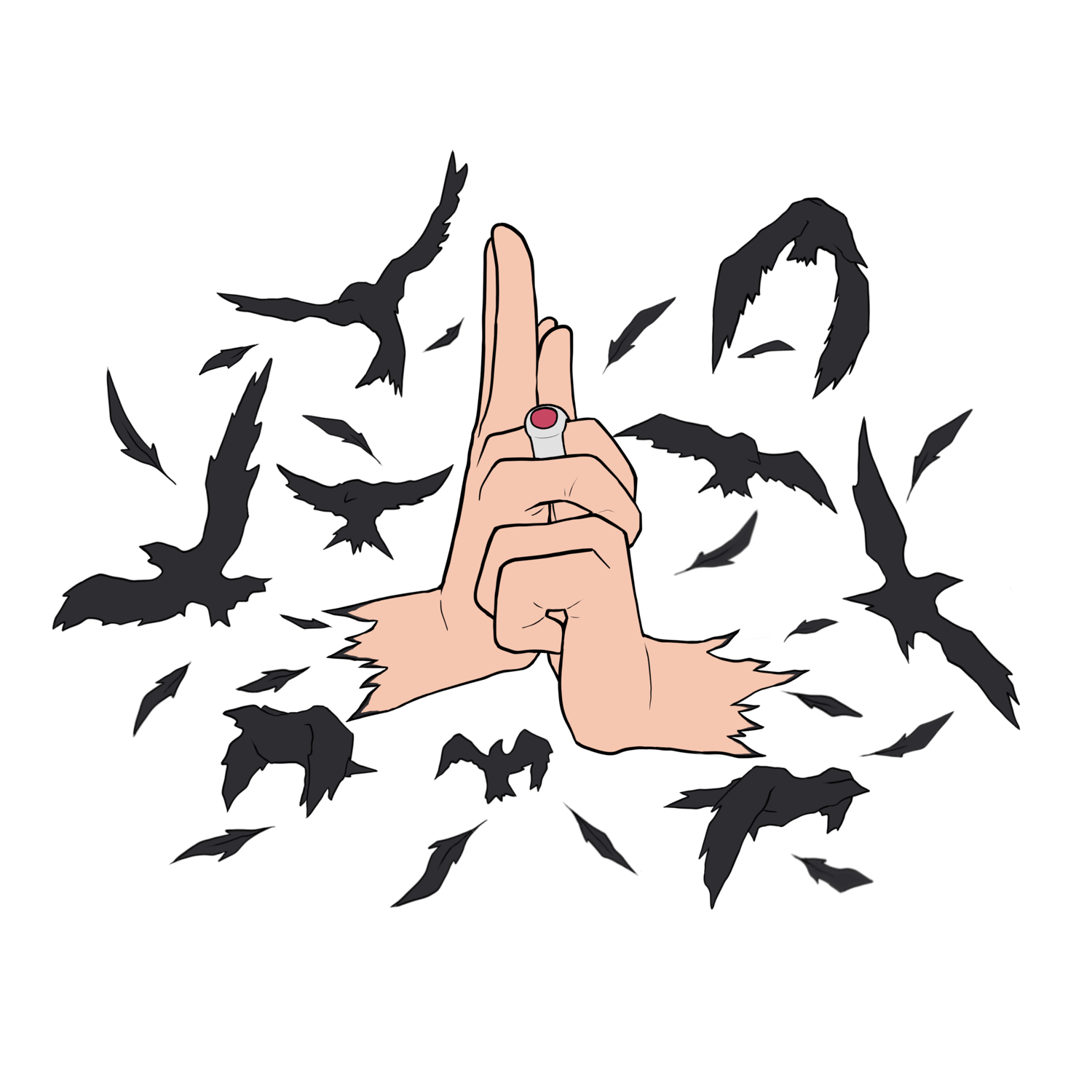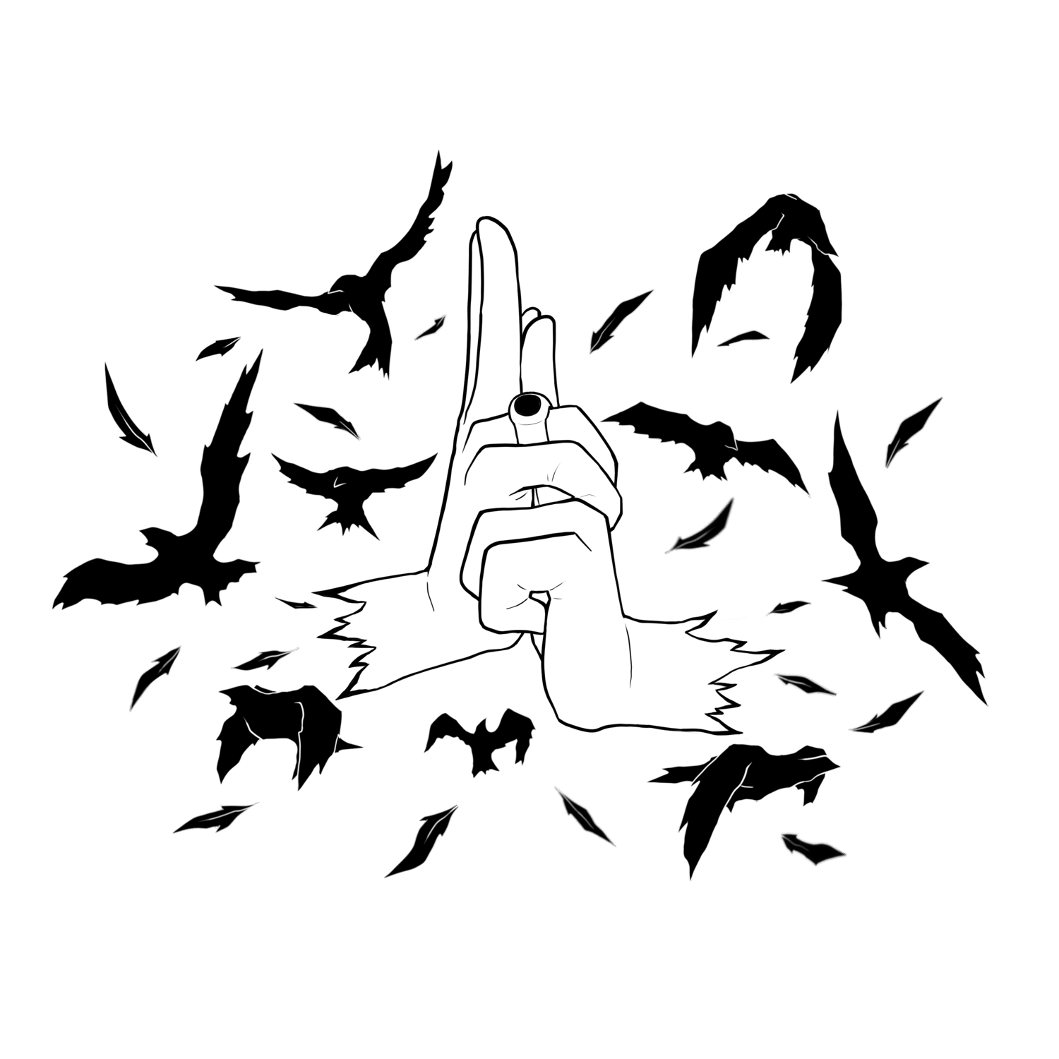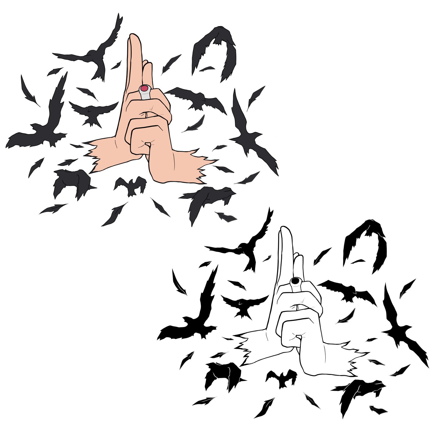 PNG, SVG, and PDF files of "Crow Summon" illustration (colored + white versions) in high quality 300dpi.