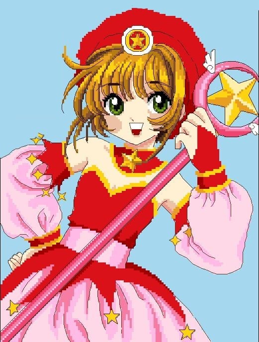 Anime Design Card Captor SAKURA in Red and Pink Costume - Cross Stitch PDF Downloadable Pattern