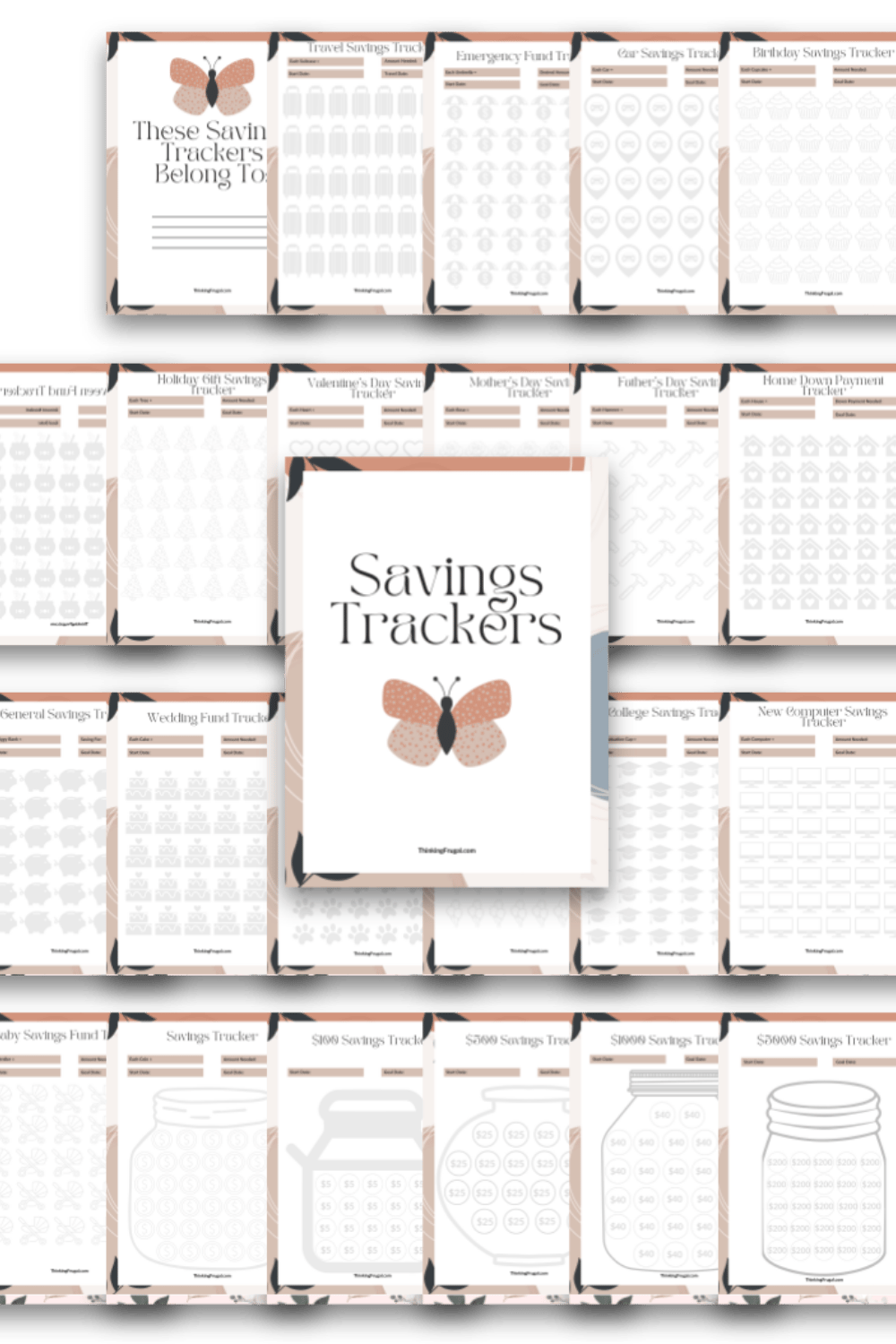 - This bundle includes 24 total pages. Includes title page, belongs to page, travel savings tracker, emergency fund tracker, car savings tracker, birthday savings tracker, Halloween fund tracker, holdiay gift savings tracker, Valentine’s Day savings tracker, Mother’s Day savings tracker, Father’s Day savings tracker, home down payment tracker, general savings tracker, wedding fund tracker, pet fund tracker, party fund tracker, college savings tracker, new computer savings tracker, baby savings fund tracker, savings tracker, $100 savings tracker, $500 savings tracker, $1000 savings tracker, and $5000 savings tracker.