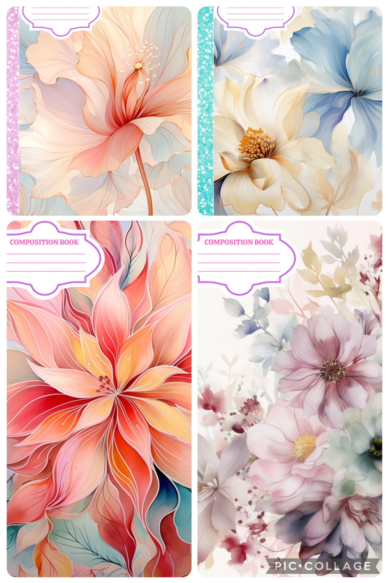 Floral Composition Notebook Cover Bundle – 4 Editable Designs | Canva Template | 7.5x9.75 and 8.5x11 Sizes – Instant Download