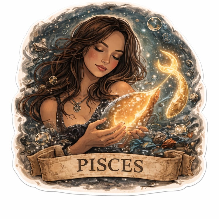 Embrace your sign with this dreamy [Zodiac Sign] sticker, featuring a cozy, mystical βmoody girlβ aesthetic. Rich in celestial details and warm tones, itβs perfect for astrology lovers who want something soft, magical, and unique.