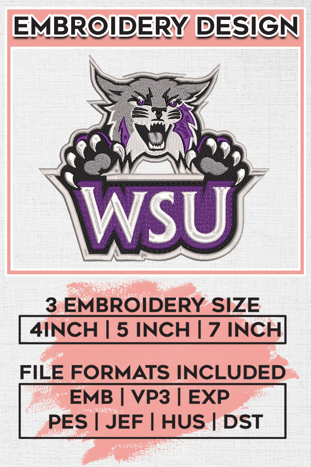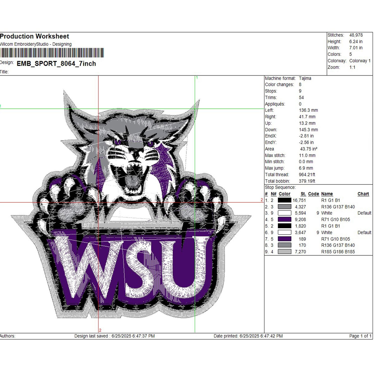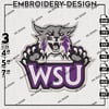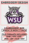 NCAA WSU Wildcats Football Team Mascot Logo Embroidery Files, NCAA Weber State Wildcats Team Embroidery, NCAA College Football Teams, Weber State Team Emroidery, 3 sizes, Machine embroidery designs, Digital Download