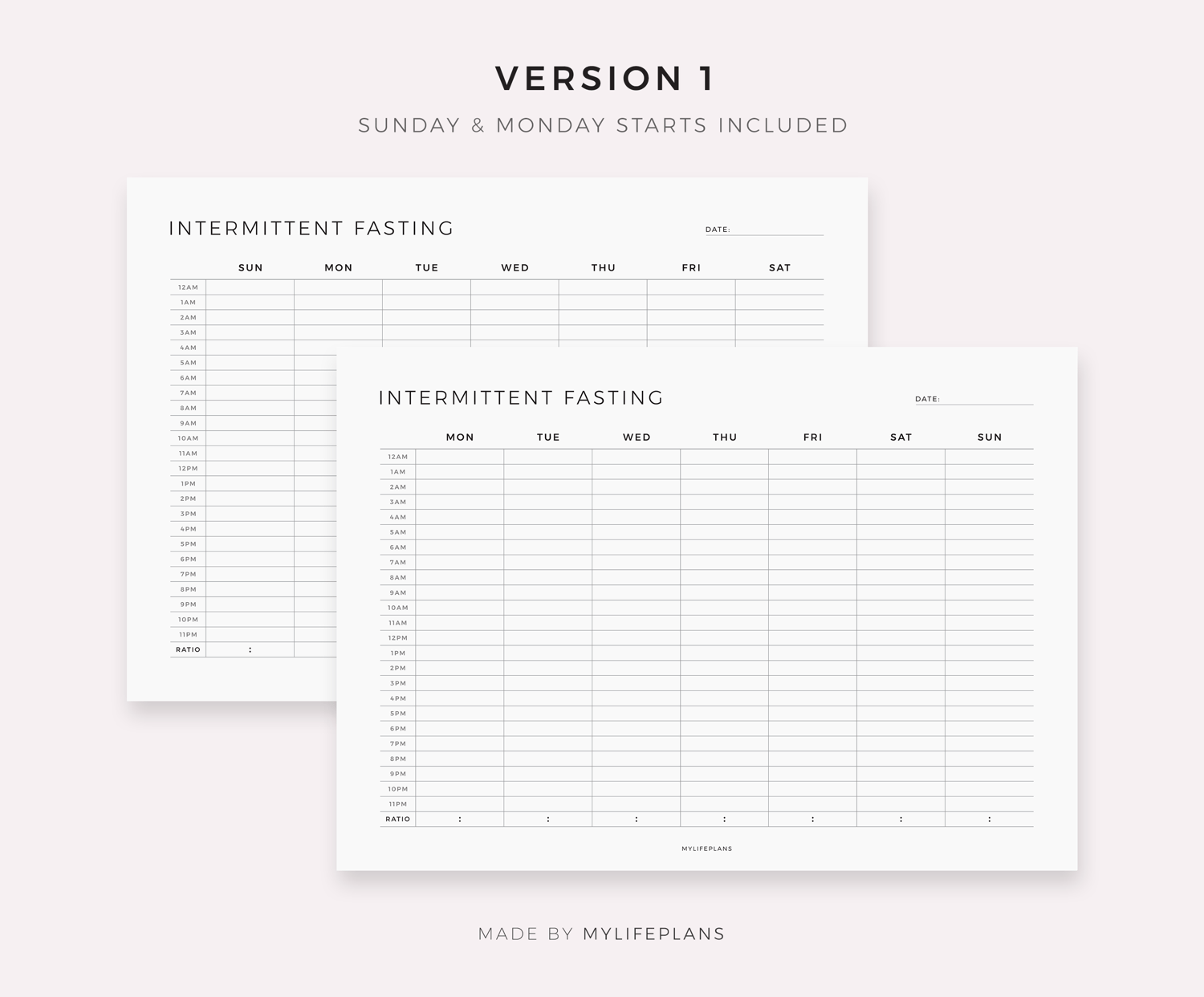 Weekly Intermittent Fasting Tracker, Landscape, Compatible with Remarkable, Supernote, Kindle, Boox