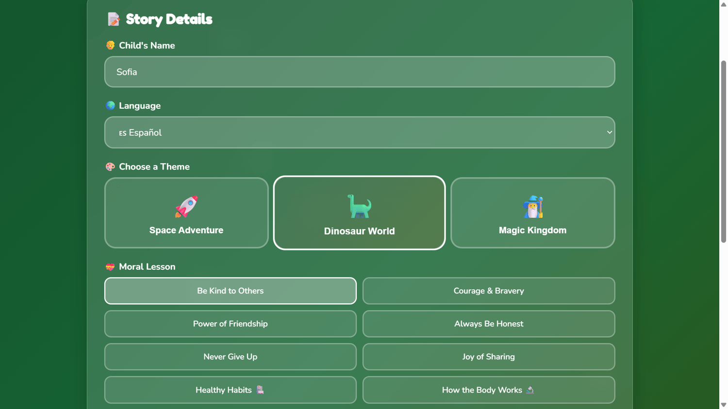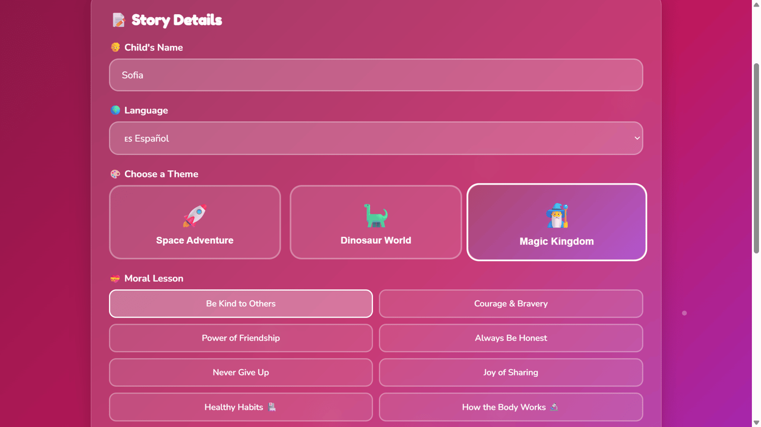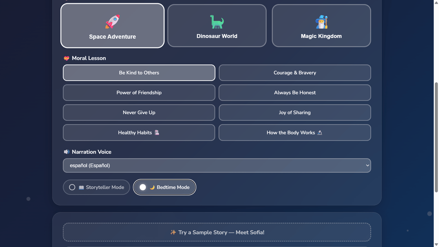- Exhausted parents — Fresh story every night, zero effort