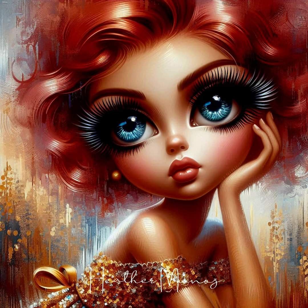 Beautiful chibi girl in gold and bronze and red tones. Digital download only.