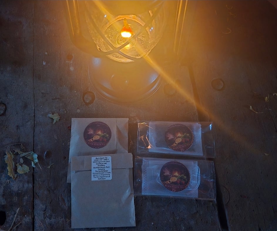 Black Hearth Tea is a small-batch loose leaf blend (available in single serve tea bag & single serve loose leaf) built around a bold black tea base, softened with citrus and gently brightened with berry notes. It carries the feeling of a fire kept low… steady, comforting, and familiar.