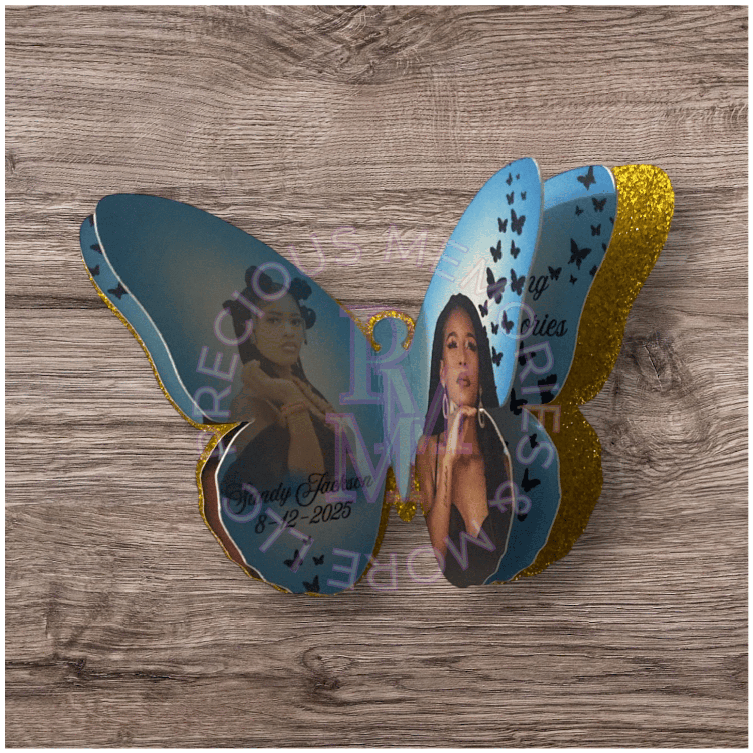 Our Memorial Butterfly Pin is a heartfelt way to honor and remember your loved ones. Each pin is custom-designed with your chosen photos and details, creating a keepsake that symbolizes love, hope, and everlasting memories.