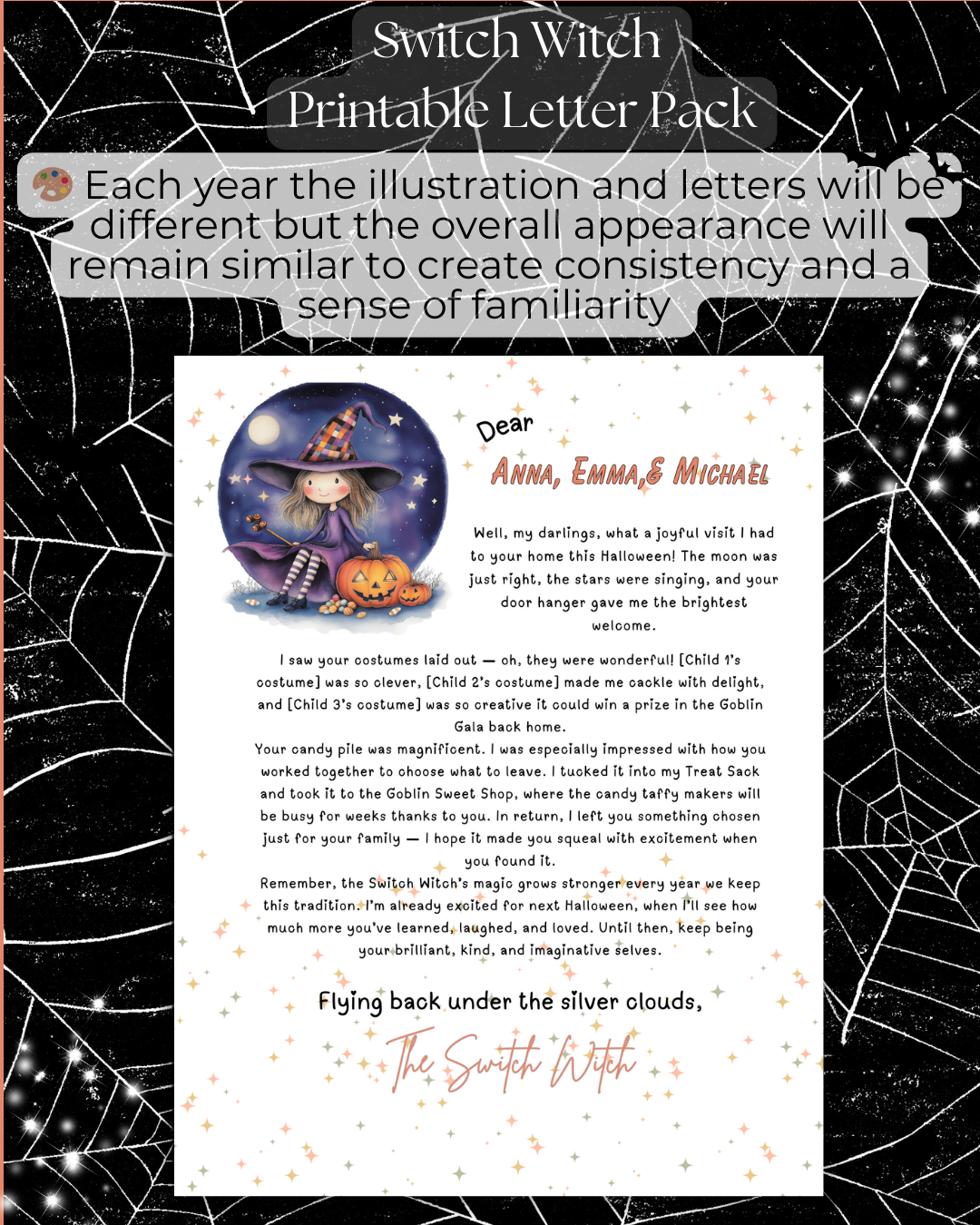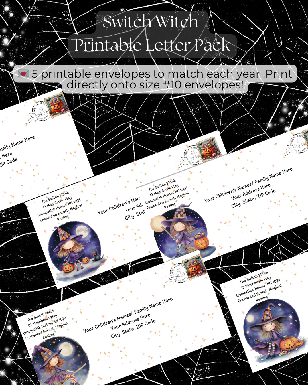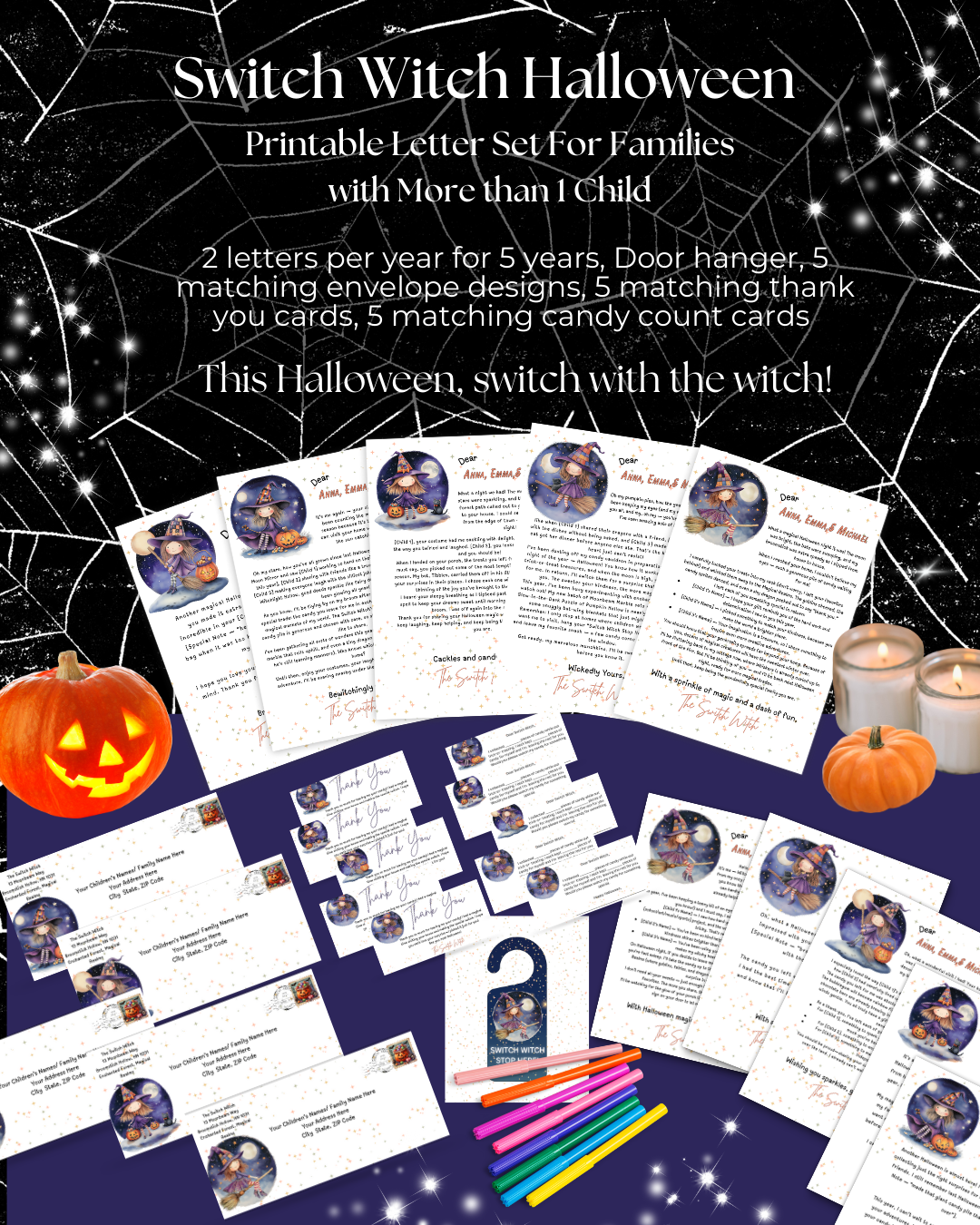 🎃 Switch Witch Halloween – 5 Year-Fully Editable Letter Set for Families with More Than 1 Child 🎃