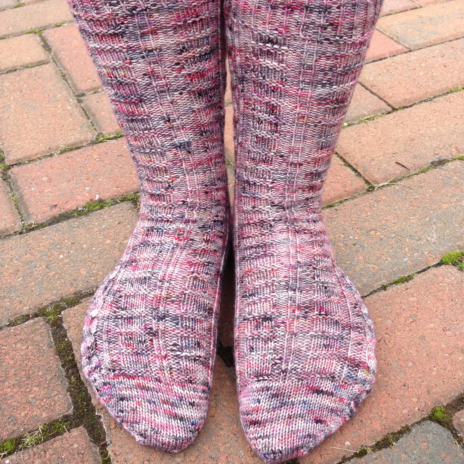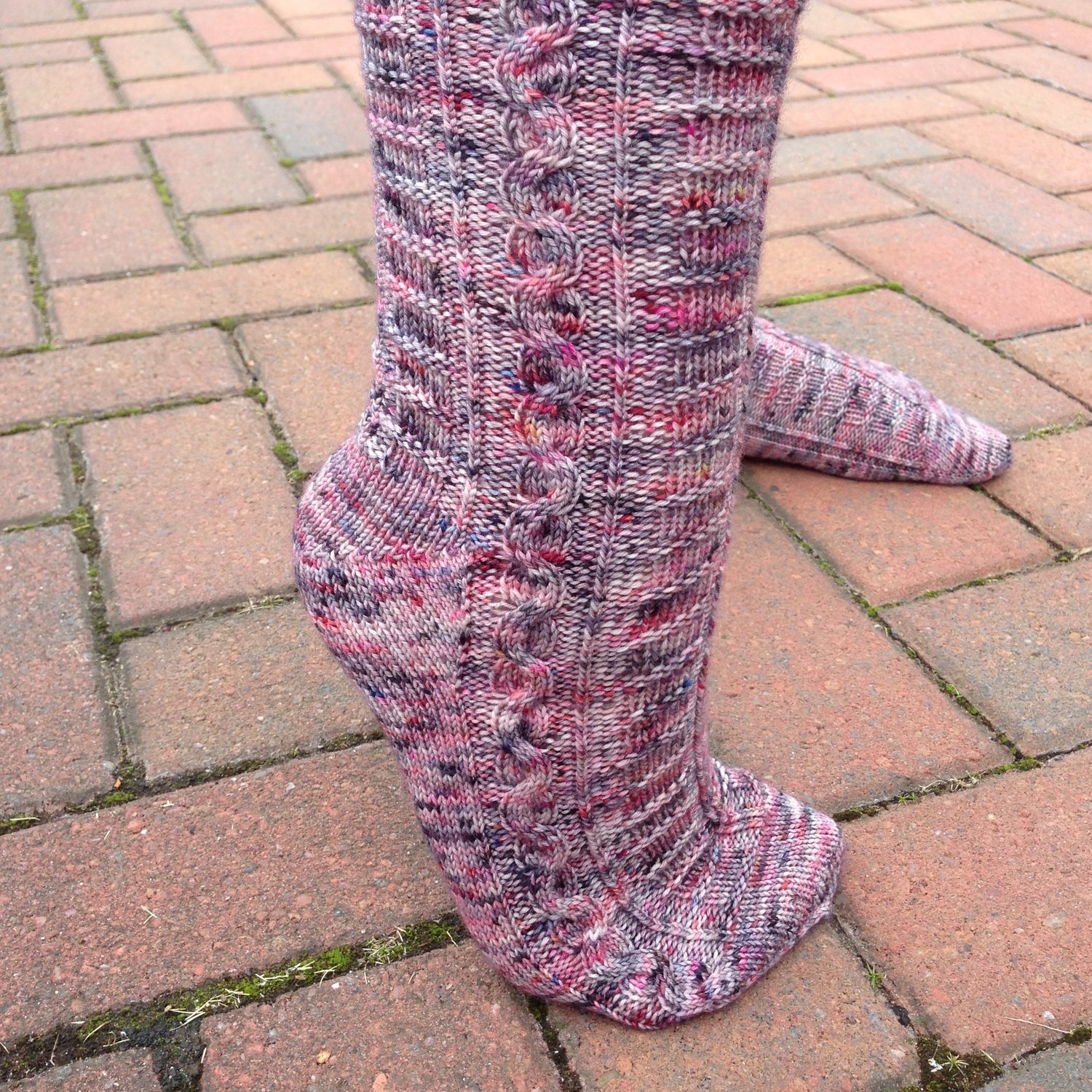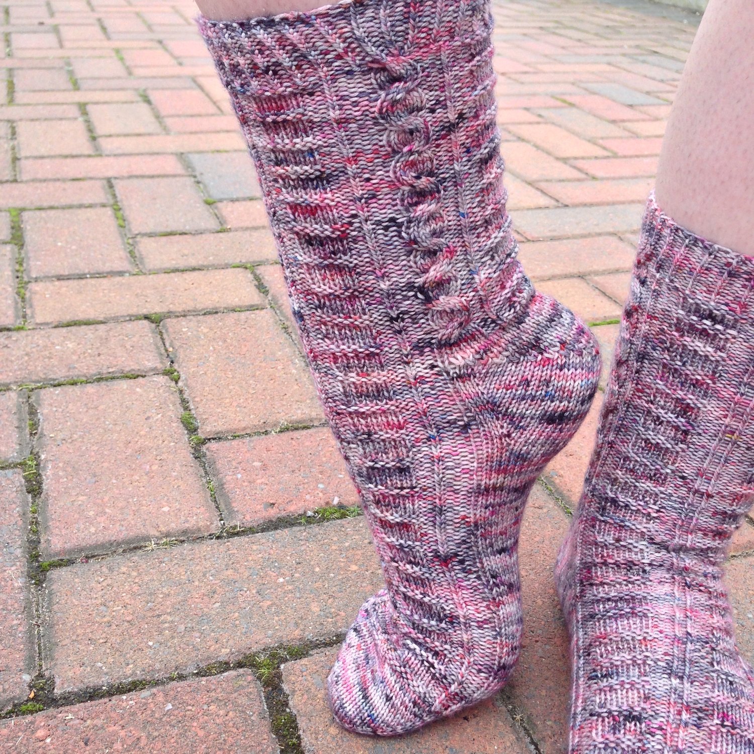 These socks are knit using the magic loop method (although the purchaser could easily adapt it for two circulars or double points).