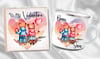 Beautiful teddy bear couple inside a heart shaped landscape. Ideal for Valentine’s Day