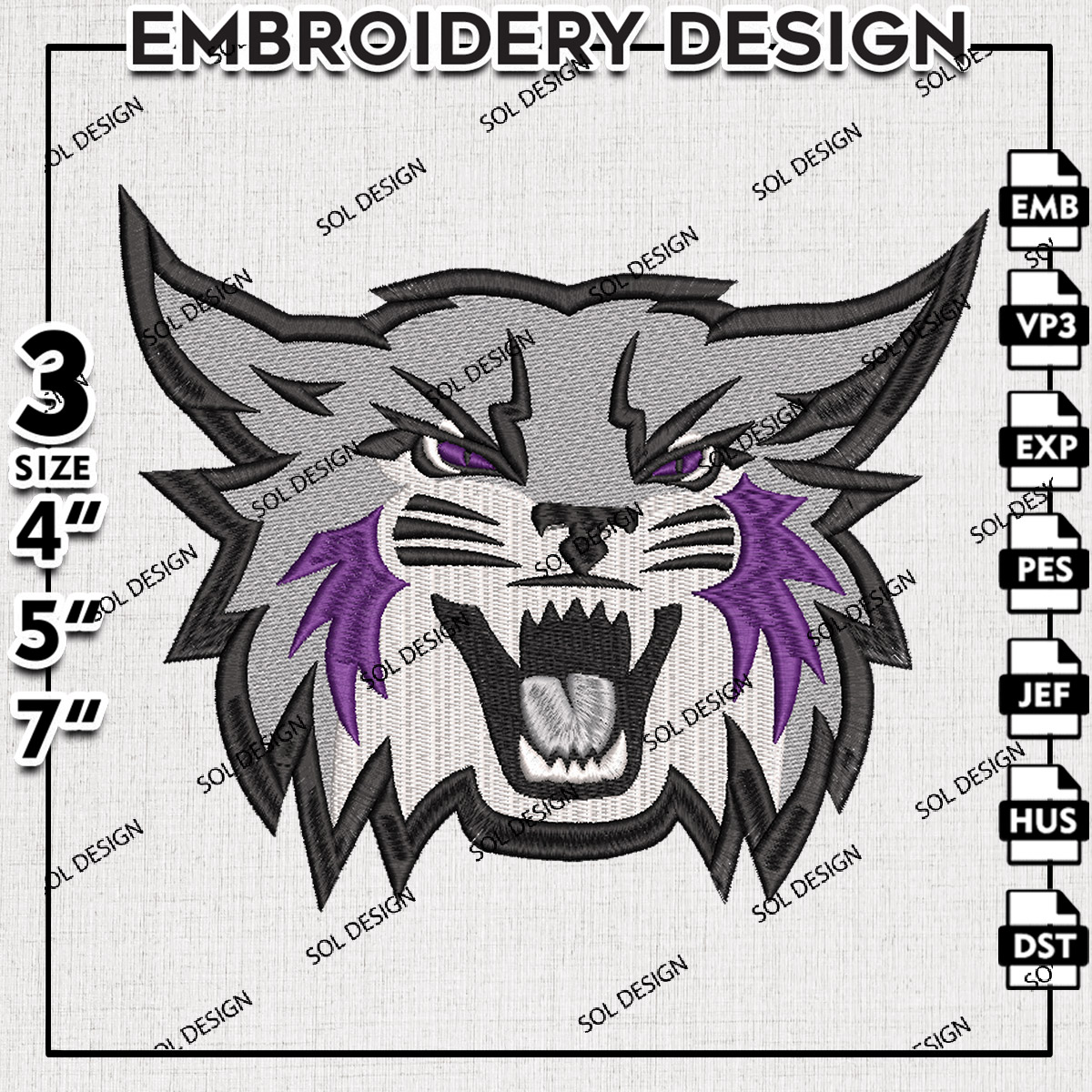 NCAA Weber State Wildcats Football Team Head Mascot Logo Embroidery Files, NCAA Weber State Wildcats Team Embroidery, NCAA College Football Teams, Weber State Team Emroidery, 3 sizes, Machine embroidery designs, Digital Download