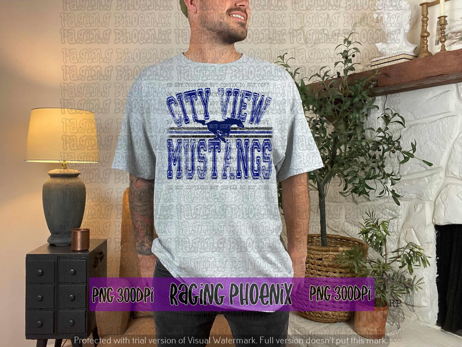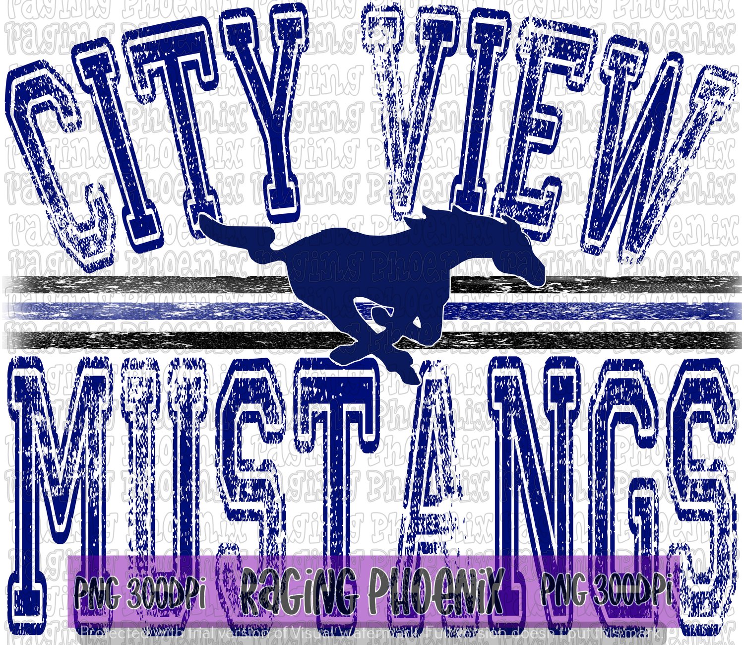VINTAGE CITY VIEW MUSTANGS BLUE VT36A