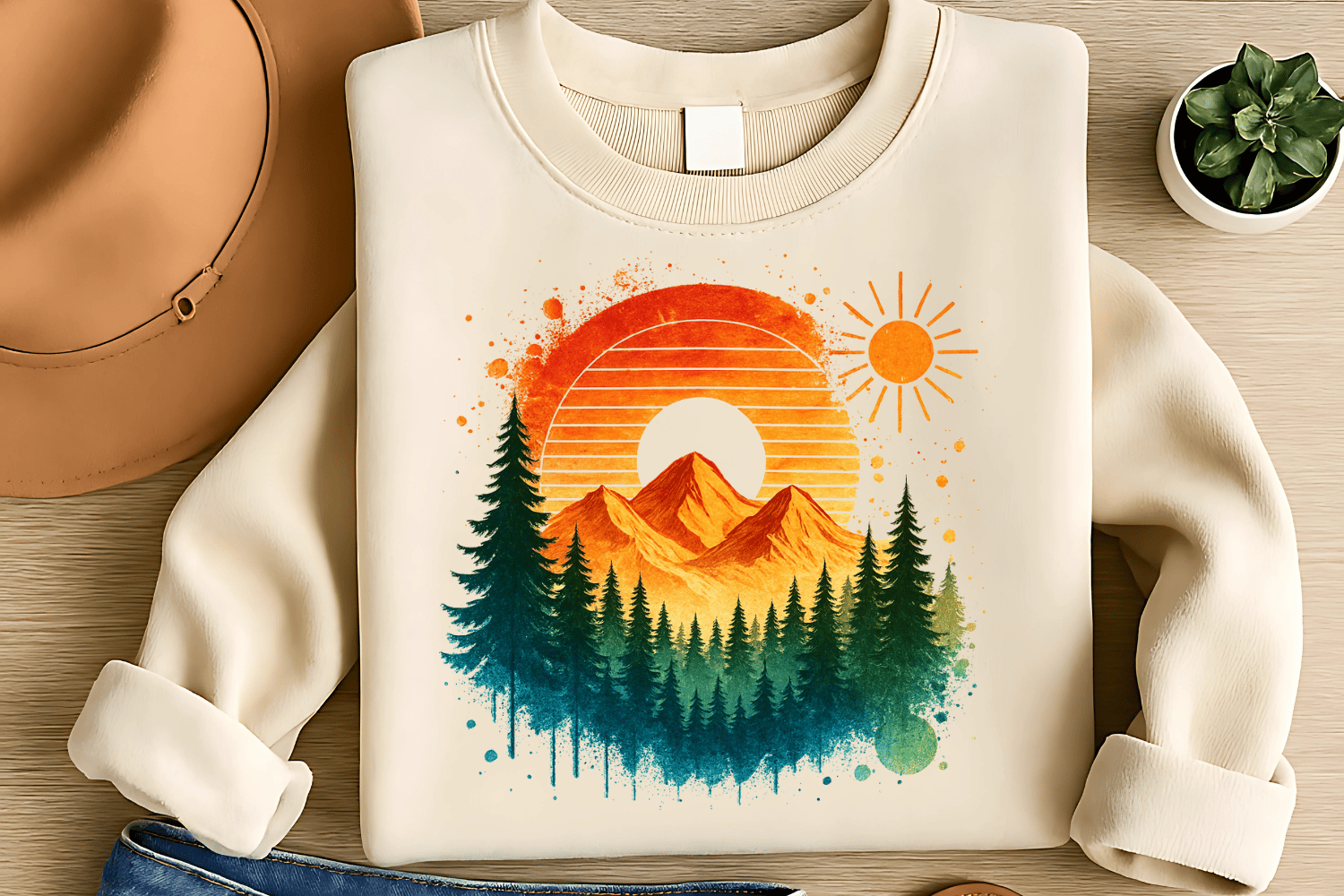 Mountain Landscape Spring Sublimation PNG – Scenic Nature Clipart for T-Shirts – Fresh & Tranquil Seasonal Design – 300 DPI Instant Digital Download