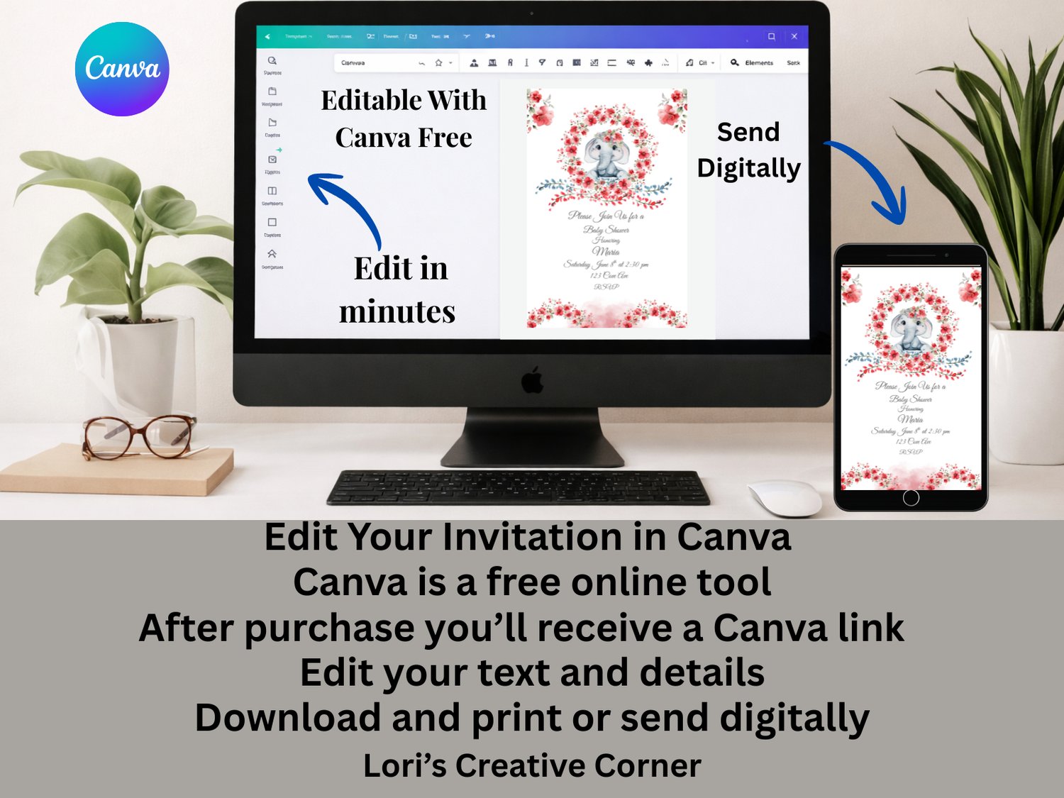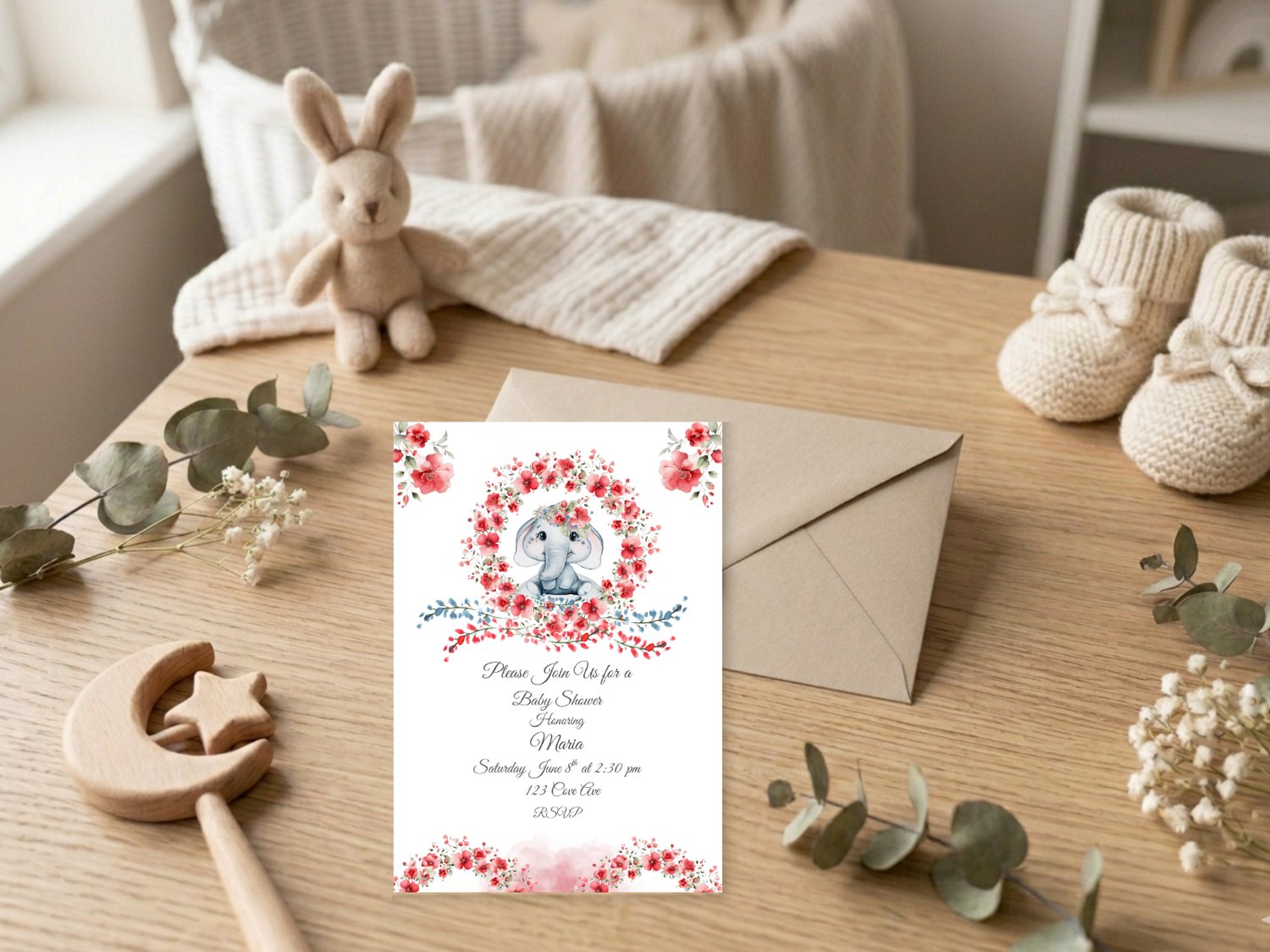 Editable Elephant Baby Shower Invitation β Itβs a Girl