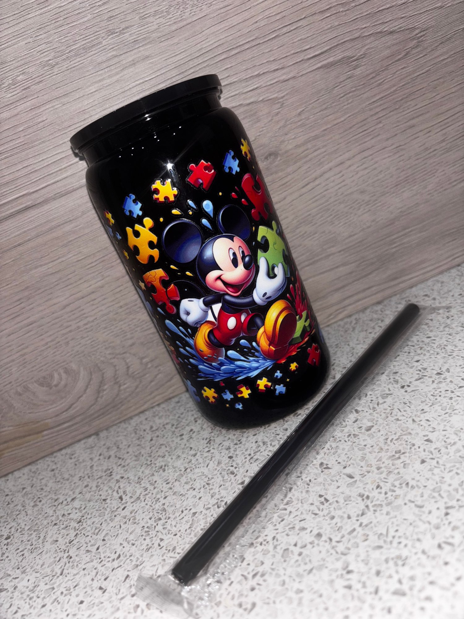 Celebrate individuality and make every sip exciting with the Autism Mouse 16oz Tumbler in sleek black with a multicolour glittered lid! Designed for children, this tumbler keeps drinks cold and refreshing while adding a playful, colorful touch.