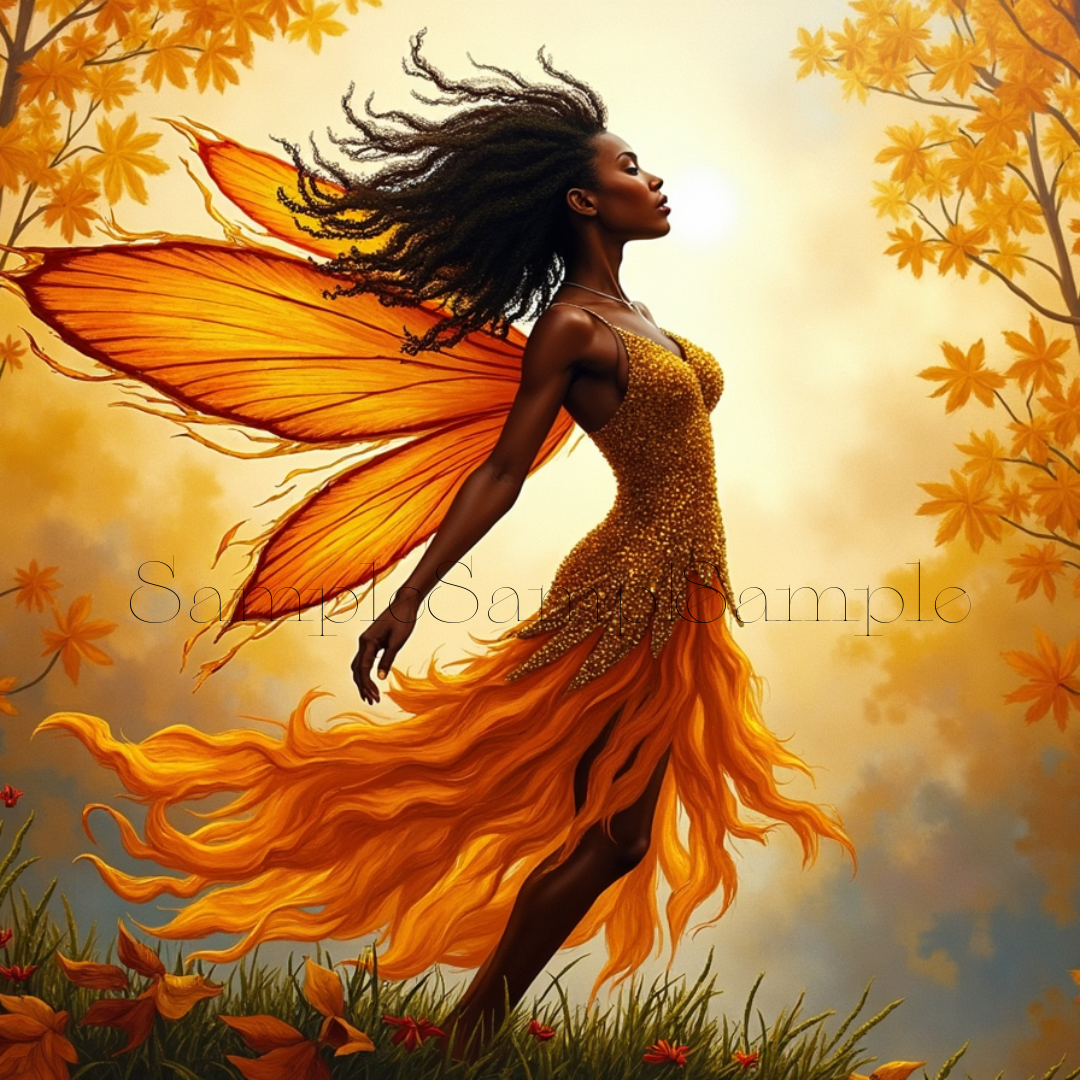 African American Flower Fairy Printable | Vertical Fantasy Wall Art Download