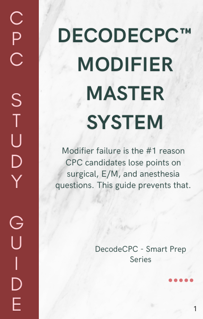 Modifiers: Specific drills for -24, -25, -57, -58.