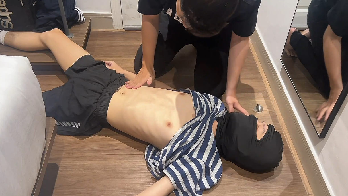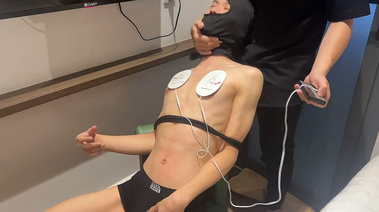 Now begins what TíngHuī calls “the game.” Stripped of his outer clothing, the thief lies motionless as two AED pads are placed firmly on his bare chest. TíngHuī starts CPR and defibrillation—not just to bring him back, but to control him. Each shock is both a revival… and a punishment.