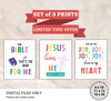 Children's Bible Songs Art, Scripture Art Printable Wall Art Bible Verse, Sunday School Religion Posters, INSTANT DOWNLOAD Set of 3 Wall Art