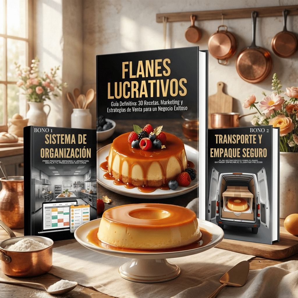 Flanes Lucrativos es un ebook práctico y fácil de seguir que te enseña paso a paso cómo transformar recetas caseras en un negocio rentable y organizado.