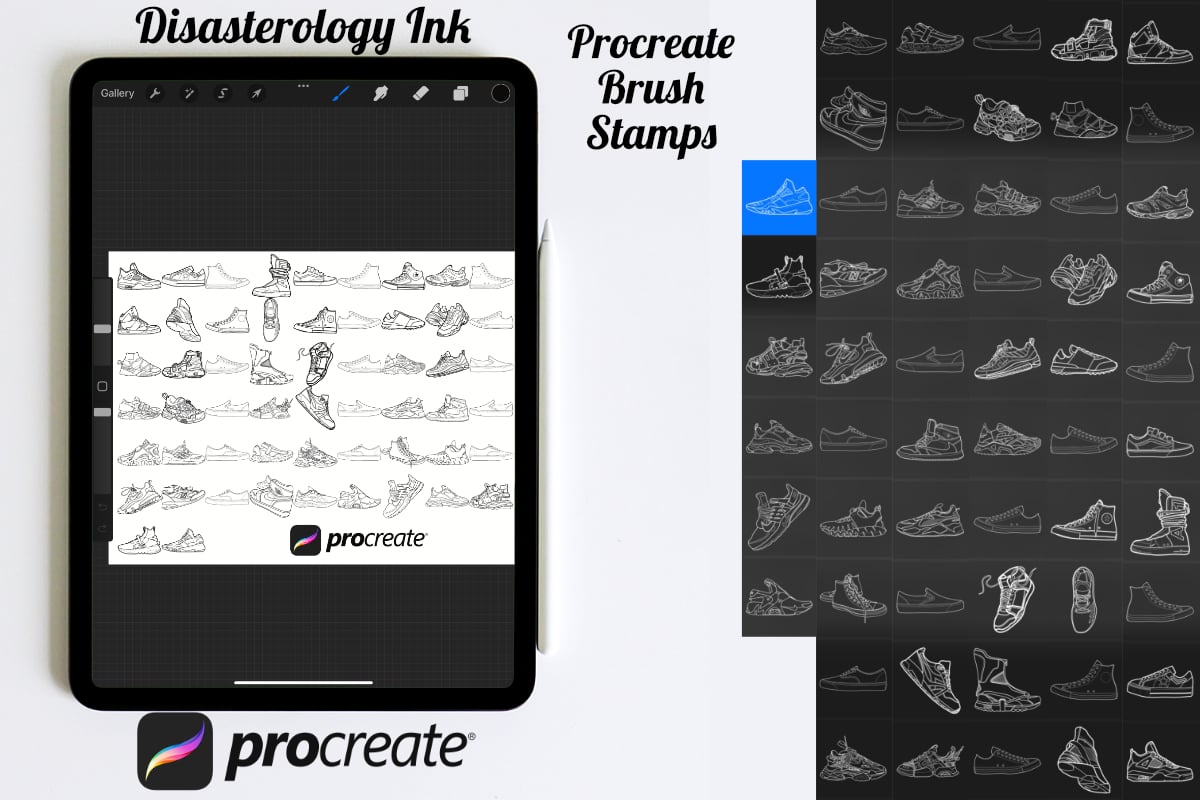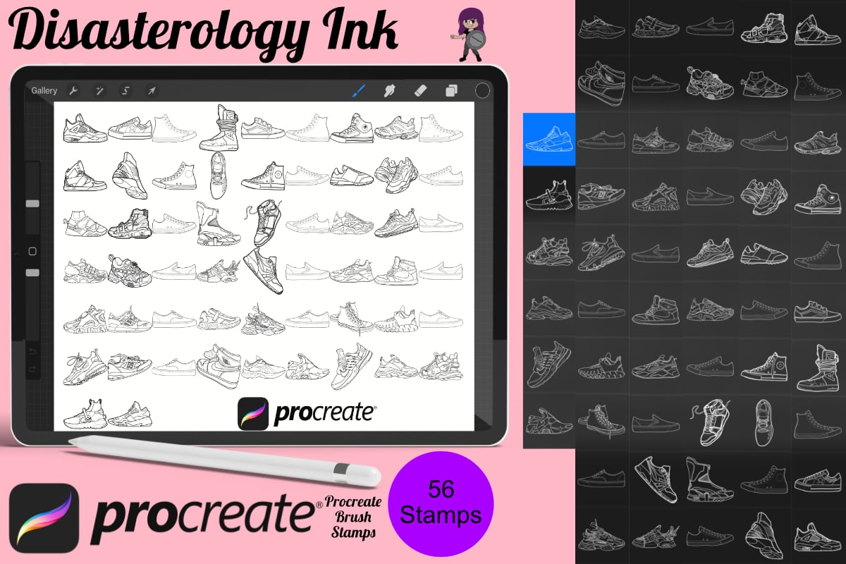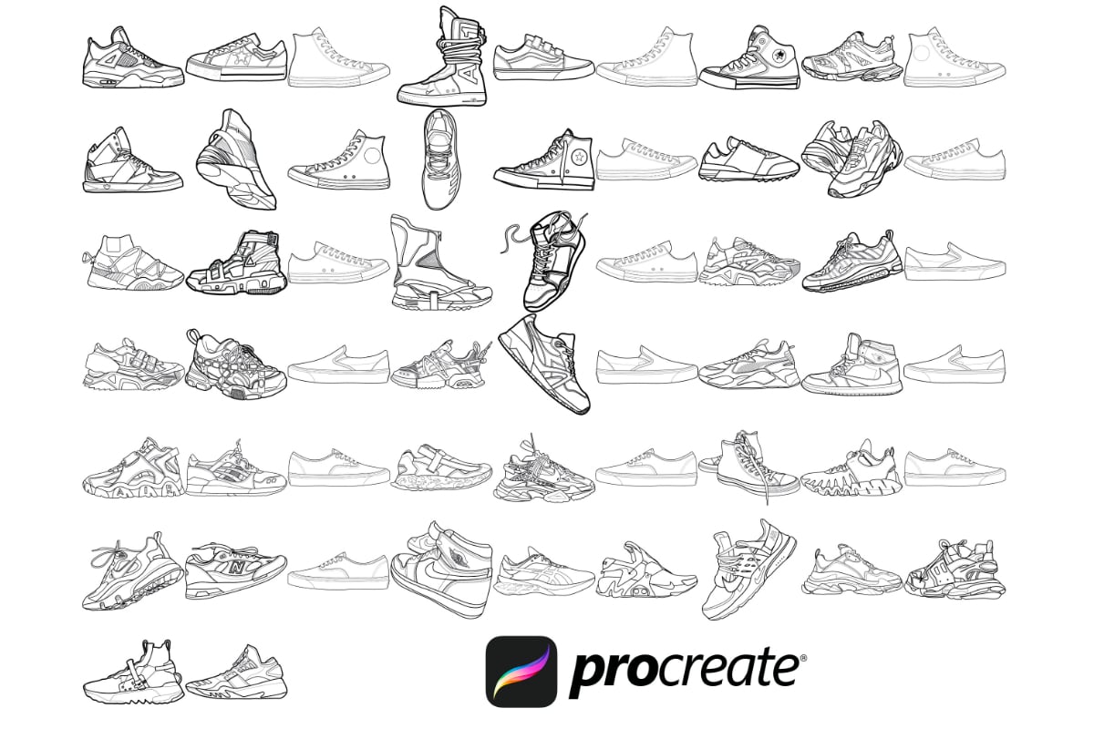 Sneaker Trainer Shoe Set 1 Procreate Brush Stamps, 56 Shoes